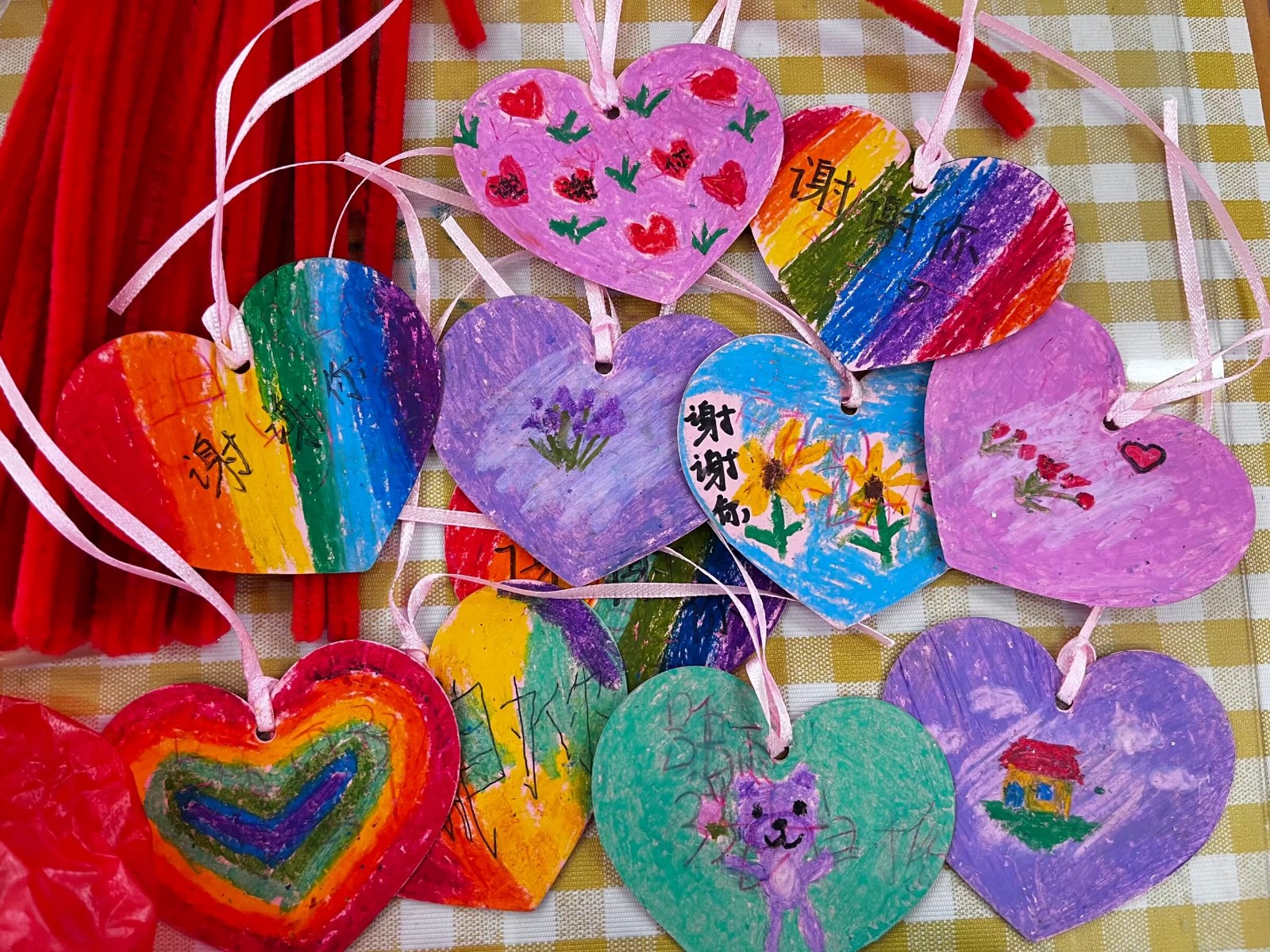 下午,随着上课铃声的响起,快乐组的唐宝们开始练习穿鞋子,在鞋堆里认出自己的鞋子。之后,又进行了撕纸练习以达到锻炼双手的控物能力。在下课前夕,快乐组的唐宝们和志愿者一起伴着音乐尽兴互动。而梦想组的孩子们在日常的学习任务之外还和志愿者一起进行了创意绘画,他们尽情地发挥想象完成了一幅幅独特的作品。手工组的志愿者们依旧在为义卖活动努力赶工,连续几天的手工活让志愿者们的手指上起了一层薄茧,但是没有一个人喊累,大家都为了同一个目标而努力着。