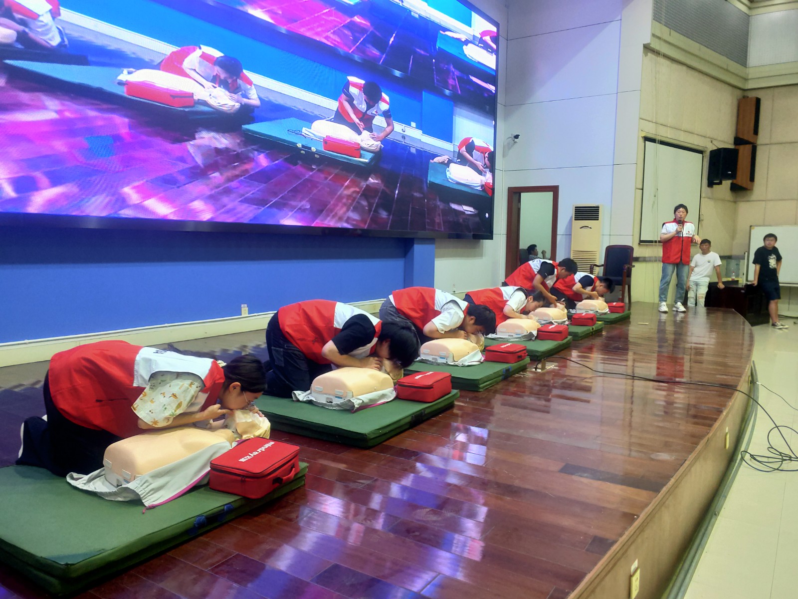 为在广大青少年中普及应急救护知识,提升自救互救能力,减少突发事件造成的人员伤亡,弘扬“人道、博爱、奉献”的红十字精神。8月6日,张渚镇红十字会走进宜兴市张渚高级中学,对2023届540名高一新生进行应急救护培训。