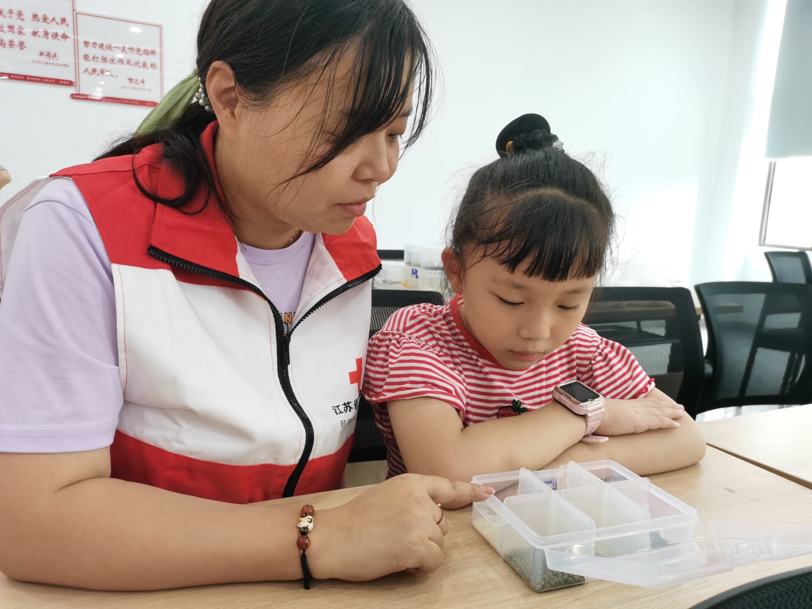 故事结束之后,红十字志愿者们为每一位小朋友发放了各类五谷杂粮,并在志愿者们的引导下,学习认识红豆、绿豆、小米、薏米等。活动最后,方老师带领大家诵读古诗《悯农》,提醒大家粮食的来之不易。提高了孩子们的节约意识,使节约成为一种习惯、一种良好风气。