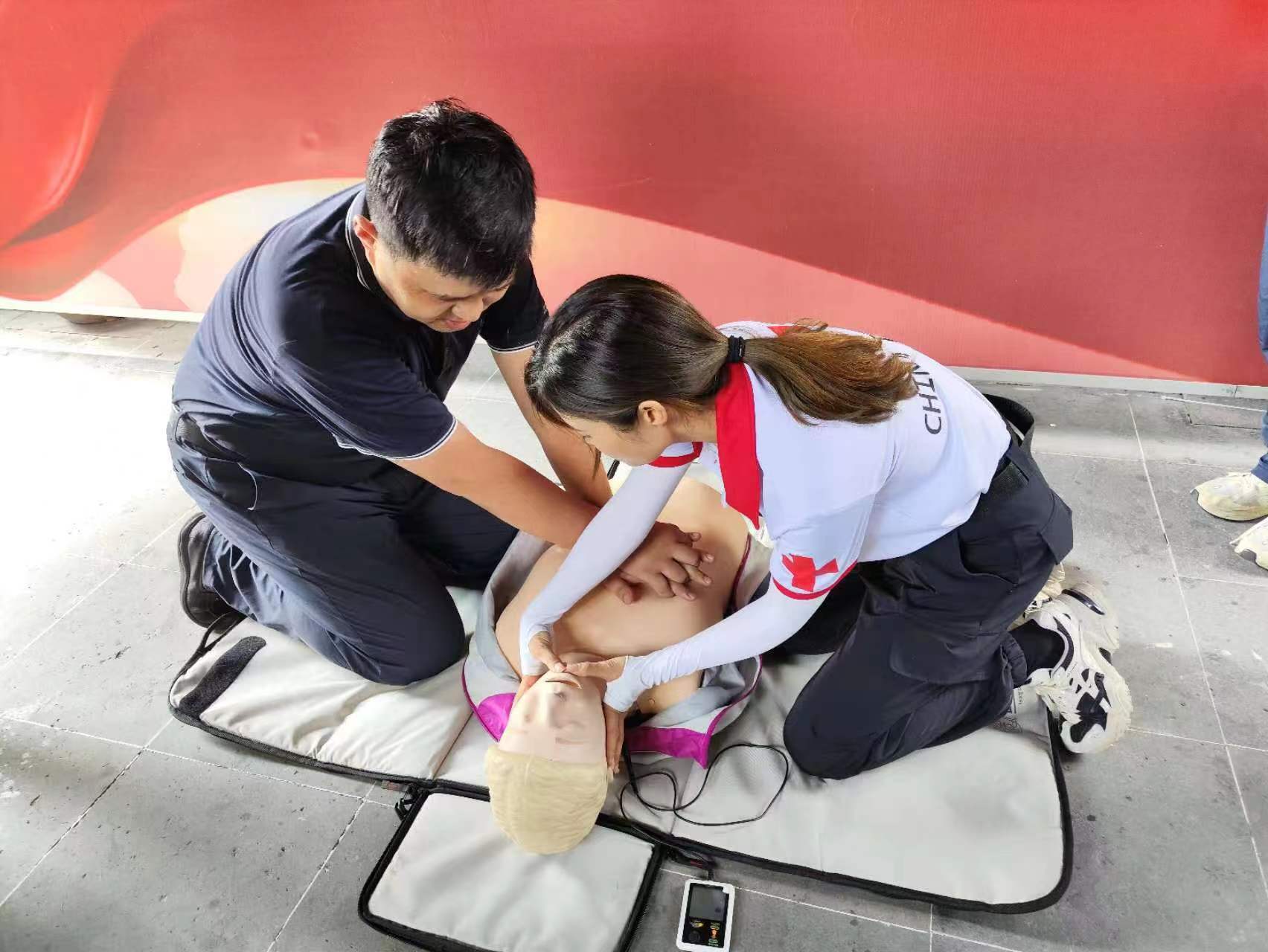 随后,红十字志愿者还现场讲解演示了气道异物梗阻的急救方法,普及了生活中常见意外伤害的紧急处理步骤,呼吁更多的人学习传播应急救护知识,倡导“人人学急救,急救为人人”的良好社会氛围。