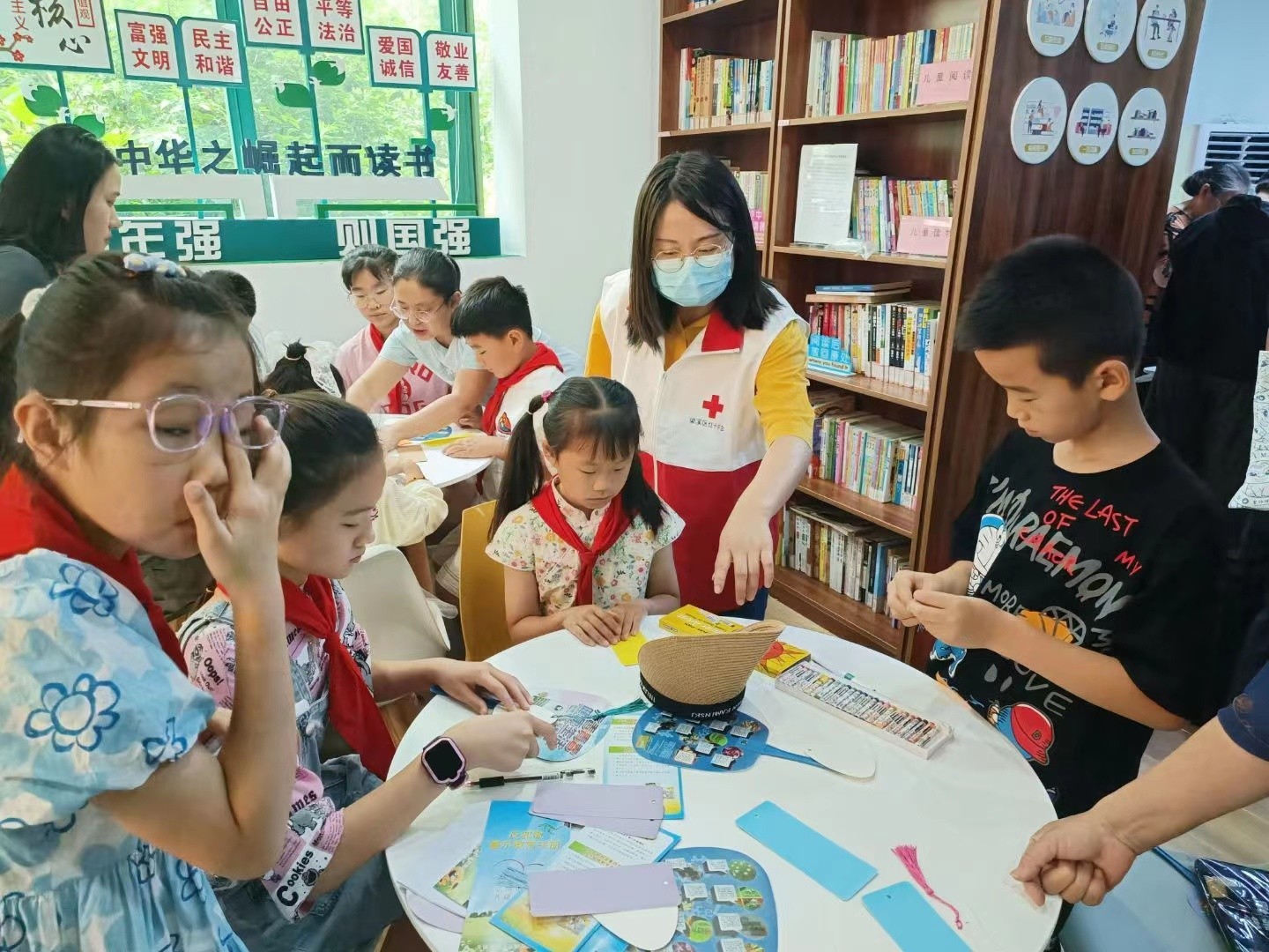 活动现场,红十字志愿者首先为大家讲解正版书籍的特征,并发放“绿色阅读文明上网”倡议书和绿书签,向青少年们普及了培养良好阅读习惯的重要性以及非法有害出版物和网络不法信息对少年儿童的危害。随后,在红十字志愿者的指导下,青少年们充分发挥想象,用五彩的画笔绘制出了自己心中的“绿书签”,一张张小小的绿书签就像一盏盏明灯,照亮了青少年们健康阅读的方向。