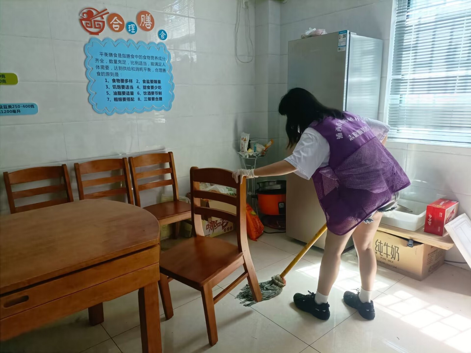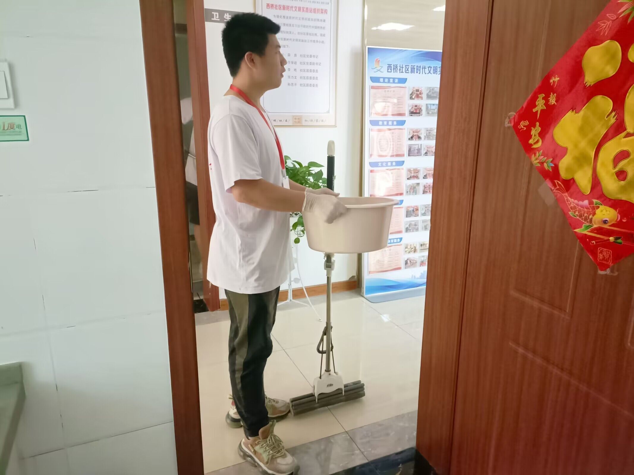 当天早晨,成员们有拿扫把的、有拿拖把的,各自分工明确,井然有序地开始了清理活动。大家不怕脏、不怕累,把社区内外的垃圾、卫生死角清理的干干净净,优化了室内外的卫生,为社区的居民提供整洁优美,舒适干净的环境。成员们充分发挥奉献精神,以不怕脏不怕累的干劲,积极认真地投入到清理行动中。围观的居民对成员们辛勤劳动的成果以及所展现的青年志愿者的朝气与活力赞不绝口。