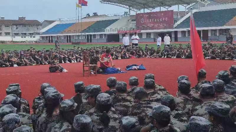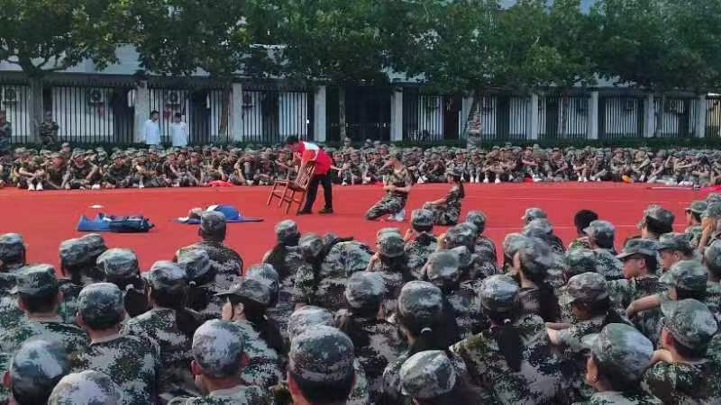 为进一步提高新生的安全意识,弘扬“人道、博爱、奉献”的红十字精神,近日,丰县红十字会救护师资来到宋楼中学为2023级高一军训新生开展了应急救护知识培训。