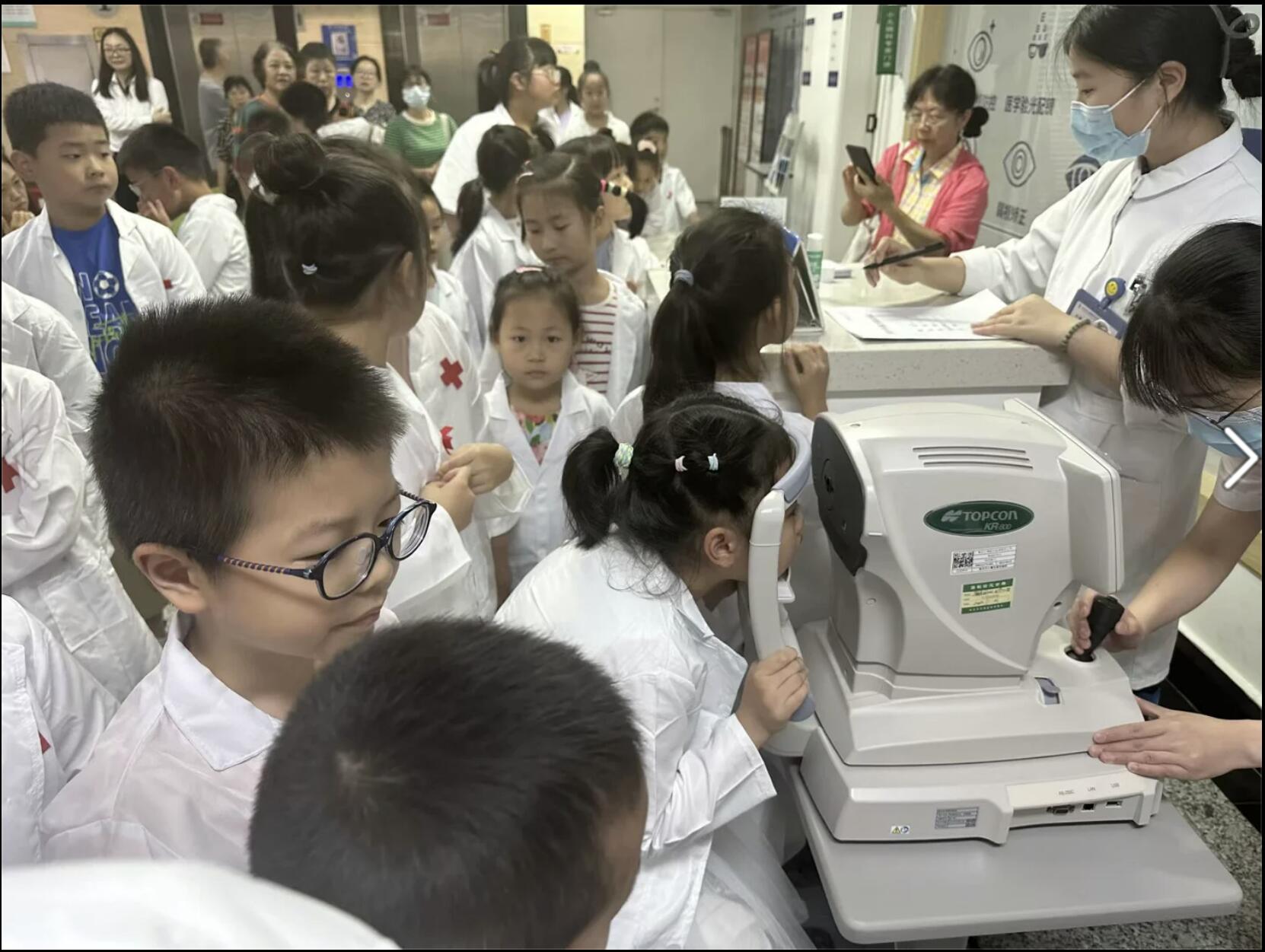 眼科医生先给小朋友们讲解眼睛的构造,讲解什么是近视,由此普及正确的用眼、爱眼、护眼的方法,现场用互动的方式,让小朋友们认识并且养成良好用眼习惯,现场医生也讲解了读写的正确姿势和眼保健操的正确做法。听完眼科健康知识讲座,小朋友们跟着医生学习如何检测视力,通过操作不仅了解到自己的眼睛视力和现状,同时更直观地意识到爱眼护眼的重要性。