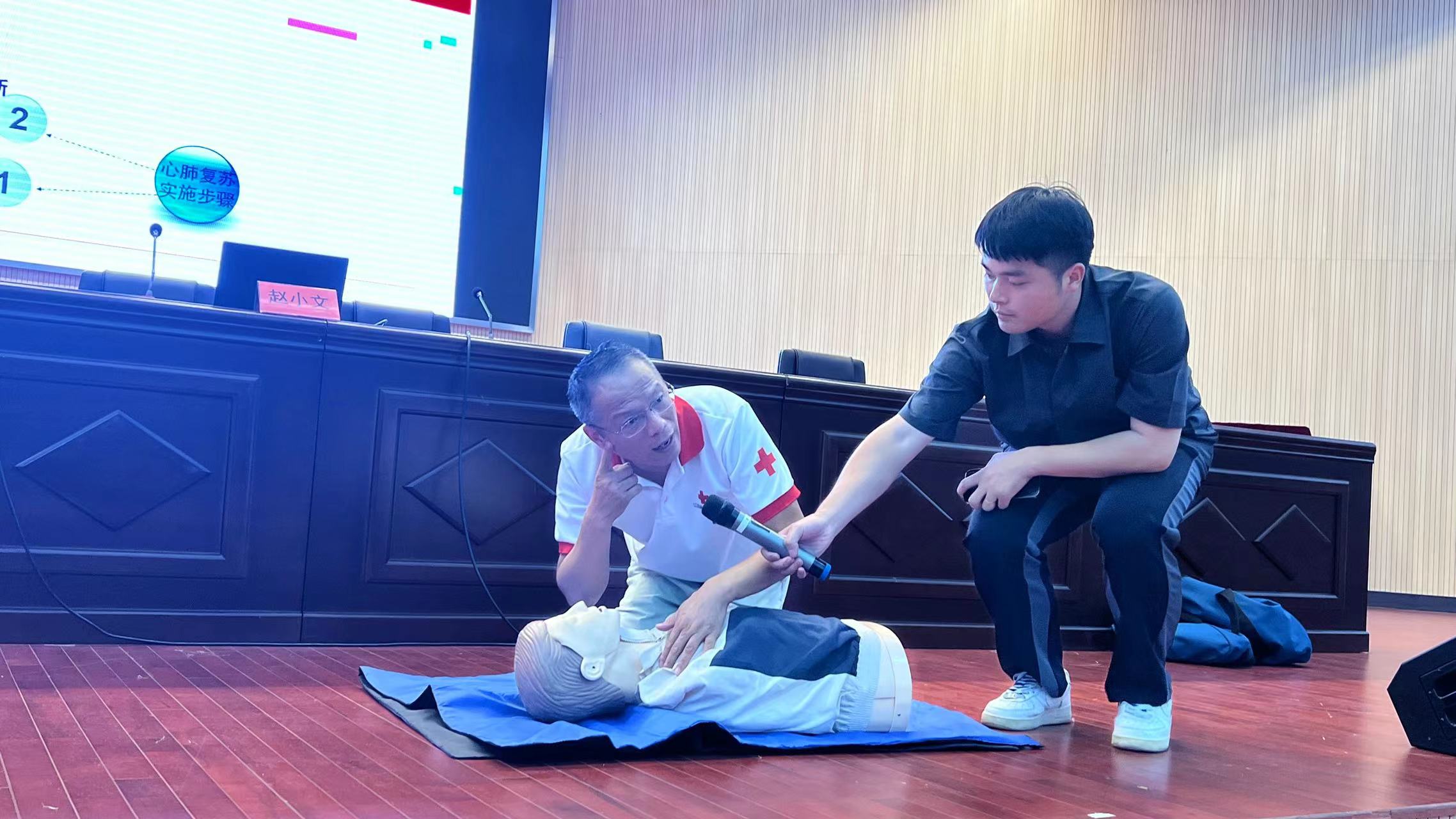 本次培训,赵小文向学生们讲解传授了心肺复苏术、海姆立克法以及常见急症、意外伤害等生活中实用的应急救护知识和技能。学生们表示,军训使他们的意志更加坚强,急救培训增长了他们的自救互救本领,实在是太重要了。