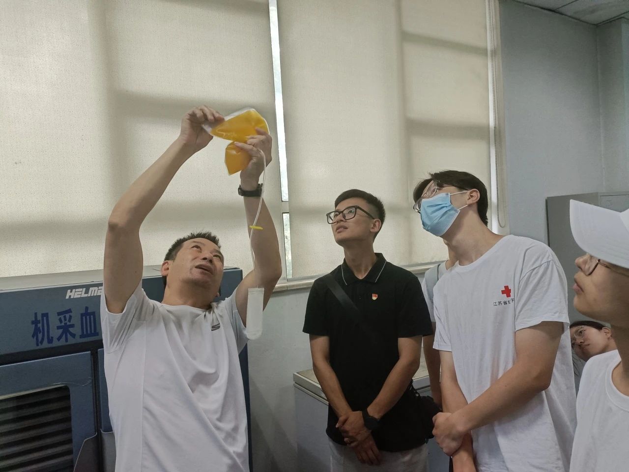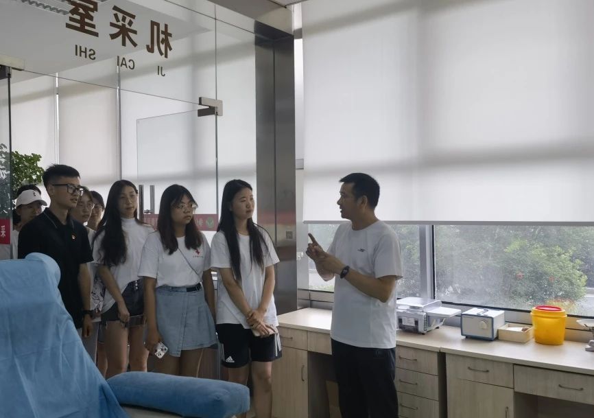 活动中,镇江市中心血站献血服务科纪宏革介绍了输血发展史和无偿献血发展历程。通过生动形象的课件,同学们认识了什么是血小板,进一步了解成分献血知识、单采血小板采集间隔期以及血小板采集前后注意事项等内容。同时纪主任详细讲解了血库内血液保存的方法和过程,让在场志愿者更加了解血液储备的必要性。纪主任带领大家参观了供血服务部、献血大厅、检验检测部、成分制备部等,了解采供血的全流程,并讲解了献血对医疗救治的重要性。