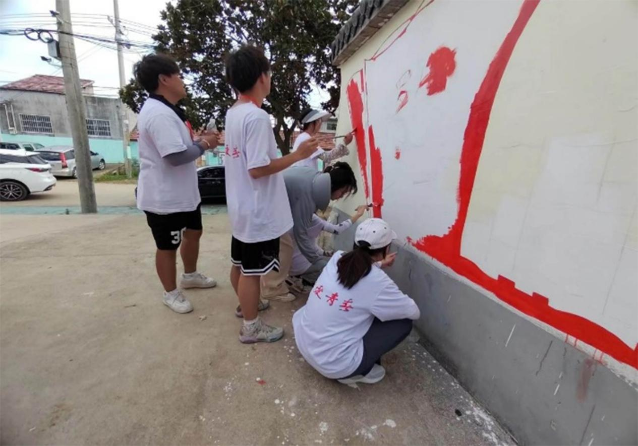 为乡村增添更多色彩和活力,营造践行核心价值观的浓厚氛围,向社会传播正能量。7月7日上午,江苏海洋大学艺术设计学院红十字会“丹青逸笔,青绘芳华”团队的志愿者开展了墙绘志愿服务活动。今日是墙绘的第一天,早上8点志愿者们便前往了白石头村村委会开启了今天的绘制工作。