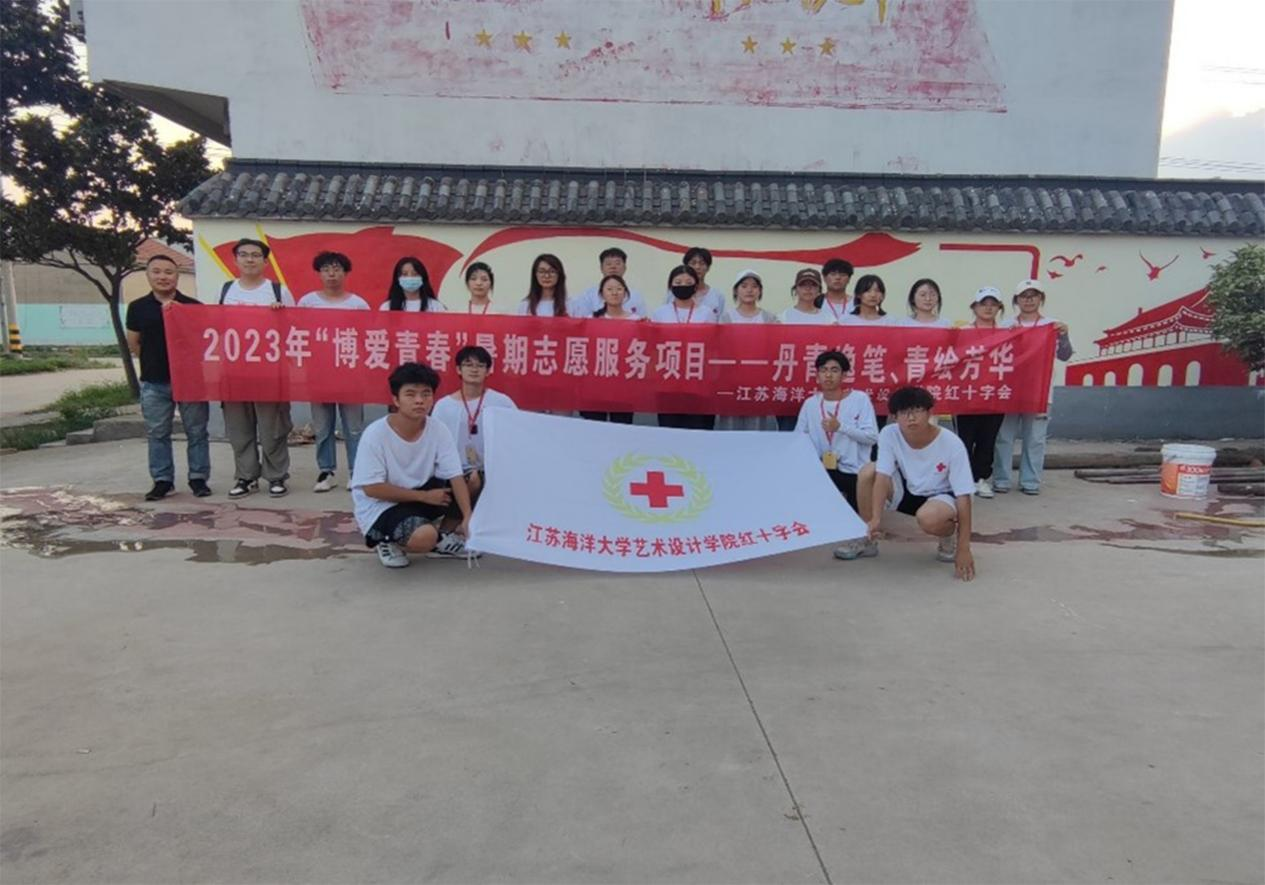 7月8号上午,江苏海洋大学艺术设计学院红十字会“丹青逸笔,青绘芳华”乡村主题墙绘暑期社会实践团队全体红十字会志愿者开启了第三天的墙绘活动。全体志愿者在白石头村新时代文明实践站开启了今天的乡村主题墙绘绘制工作 。
