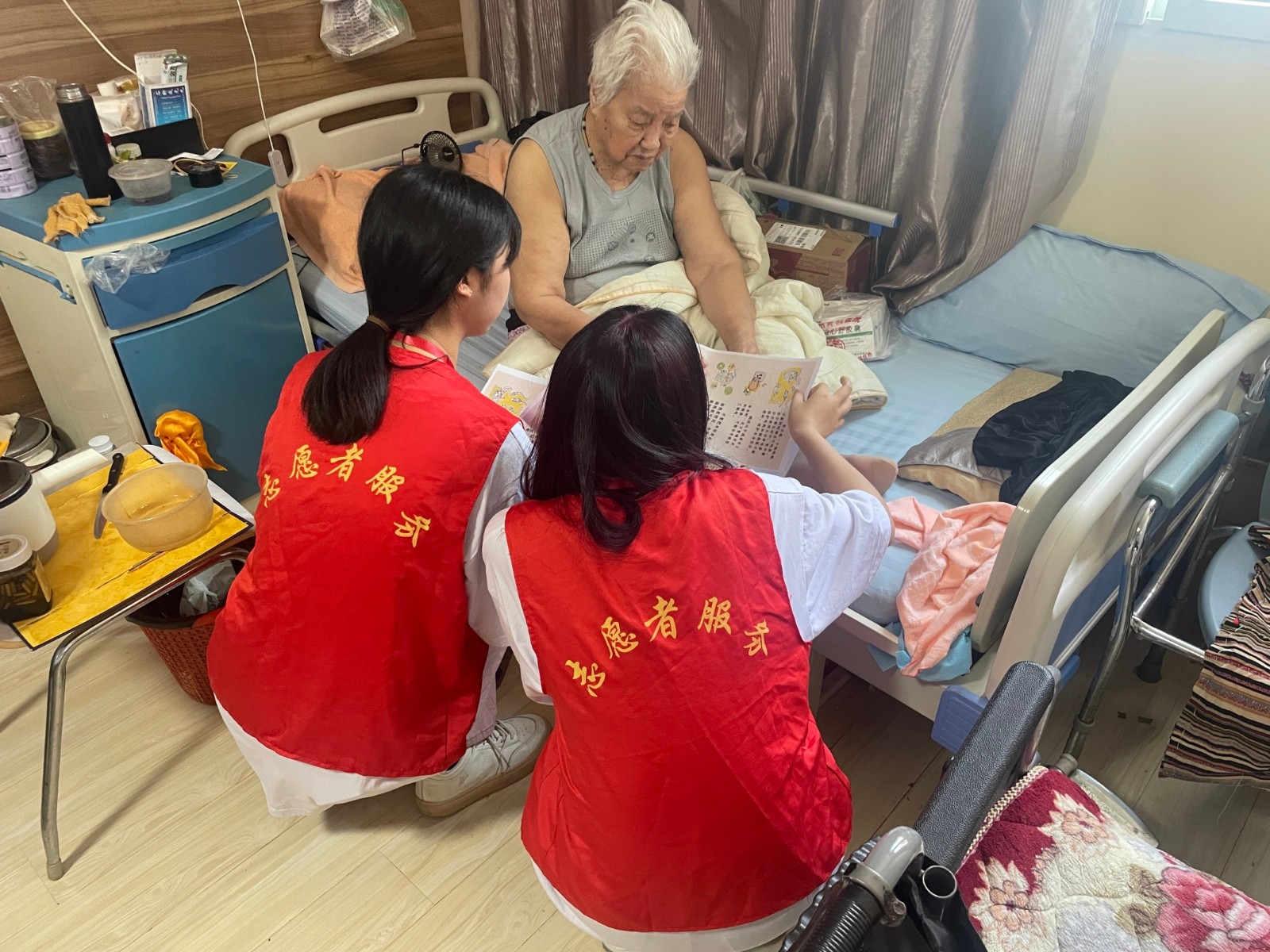 随后,红十字志愿者走进老人的房间,真实体验老人的日常生活,倾听老人口中的过往。