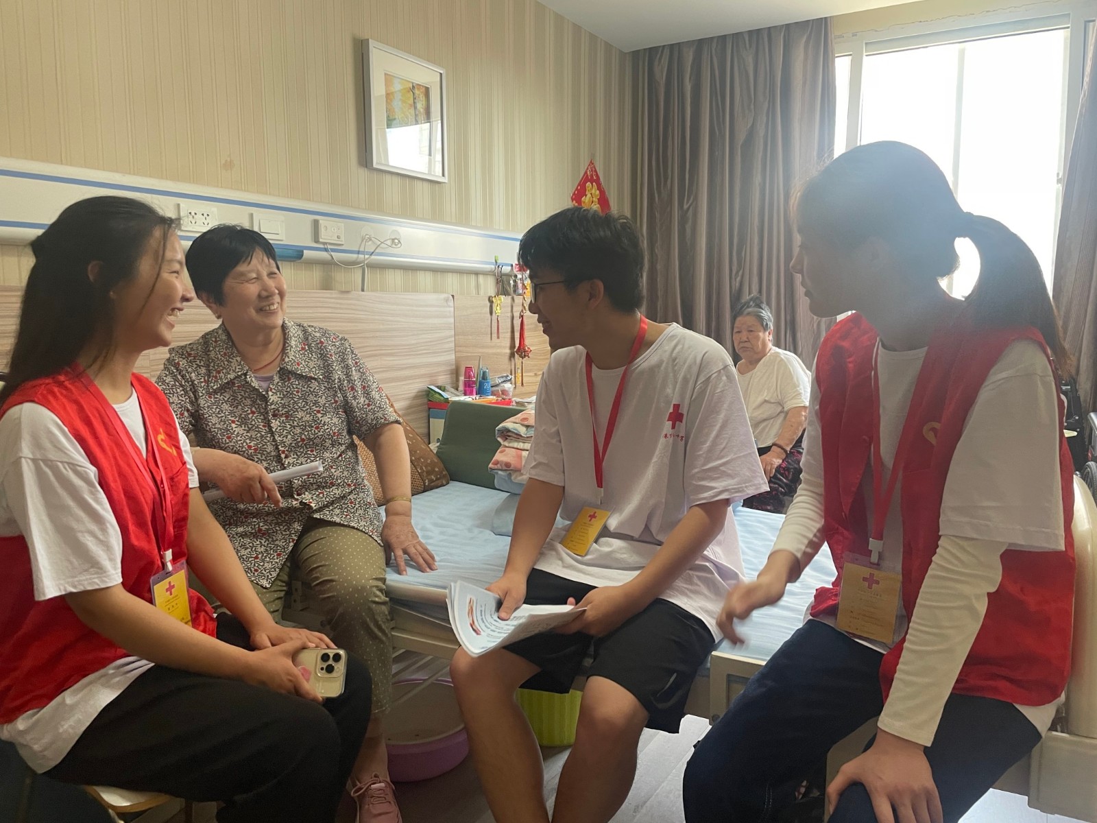 养老服务关系千家万户,事关百姓福祉,是一项重要的民生工作,也是积极应对人口老龄化国家战略的重要一环。连云港师范高等专科学校海洋港口学院红十字分会开展“博爱心向党,青春暖夕阳”博爱青春暑期社会实践活动。为解决当今社会压力增长导致的空巢老人数量增多的问题,6月27日至6月30日,连云港师范高等专科学校海洋港口学院组织多名红十字志愿者成立志愿小队,赴海州区郁州养老院,开展养老院志愿活动,为空巢老人送去真切的温暖。