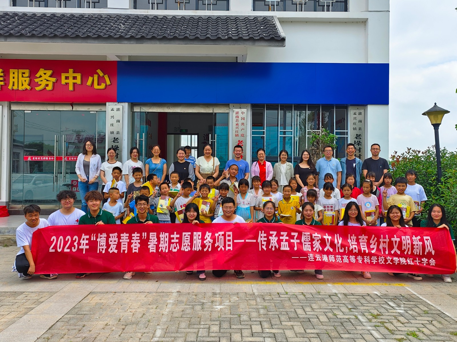 本次走访慰问活动,连云港师范高等专科学校文学院党总支为当地乡村青少年儿童带去了唐诗宋词、名著名作、国学经典等中华传统文化读物书籍,希望他们多读书、读好书,提高对于读书重要性的认识,通过读书学习,用知识改变命运。孩子们手捧书籍,脸上洋溢着快乐的笑容。最后,全体党员教师、文学院红十字会志愿者和老垛村的孩子们进行了合影留念。