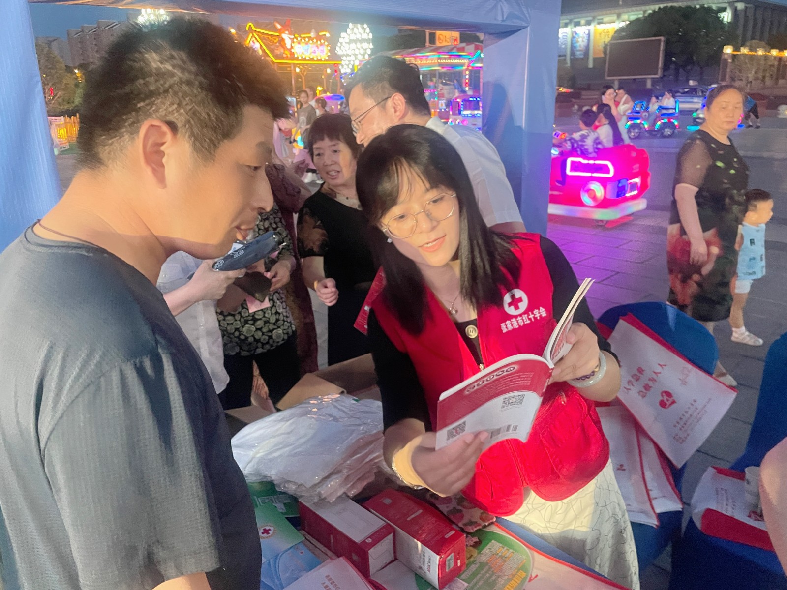 活动现场,市红十字会聚焦主业,组织红十字志愿者开展红十字业务、遗体和器官捐献以及应急救护技能等知识宣传。红十字救护师还为现场群众介绍了掌握心肺复苏技能的重要性,并演示了操作步骤,帮助大家提高风险防范意识和自救互救能力,吸引了不少群众驻足观看。