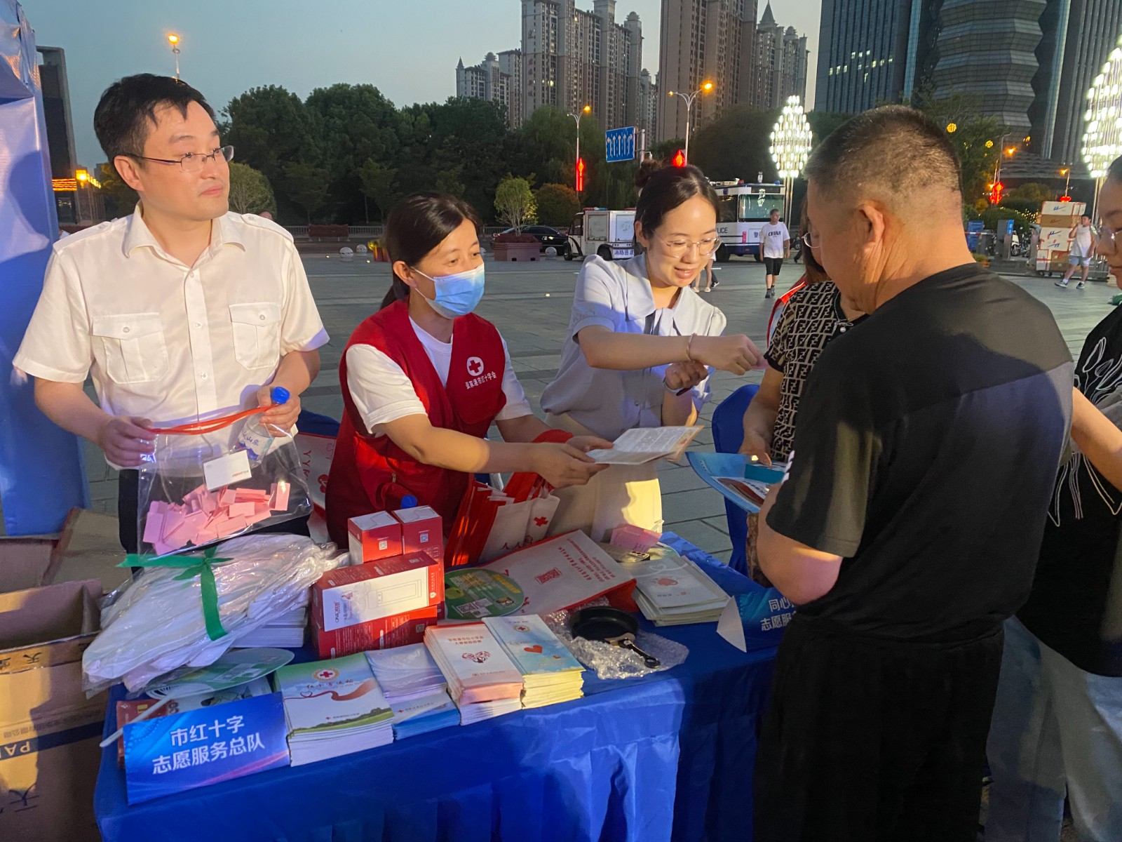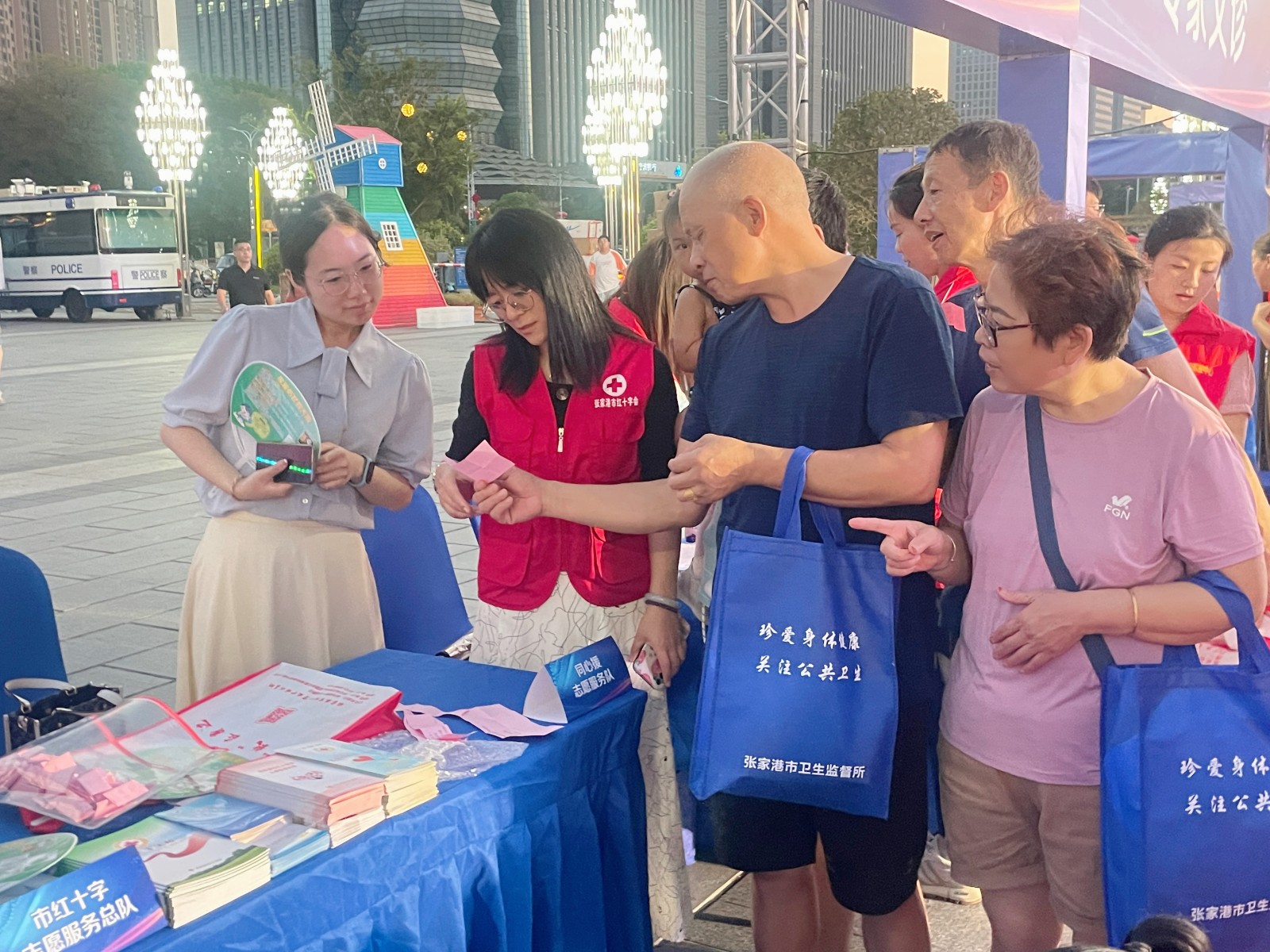 8月17日晚上,张家港市健康"益”起来党员志愿服务集市在万达广场火热开集。
