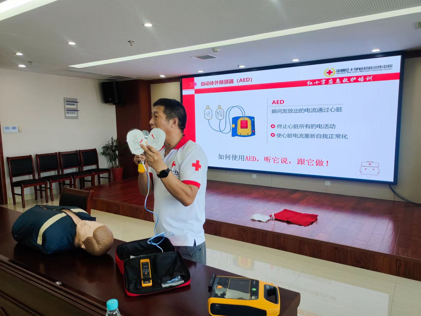 近日,盐城市亭湖区红十字会在盐城市干休所开展应急救护技能培训,重点讲解并模拟演示心肺复苏术、正确使用AED等应急救护技能。干休所全体工作人员和30名军休人员代表参加培训。
