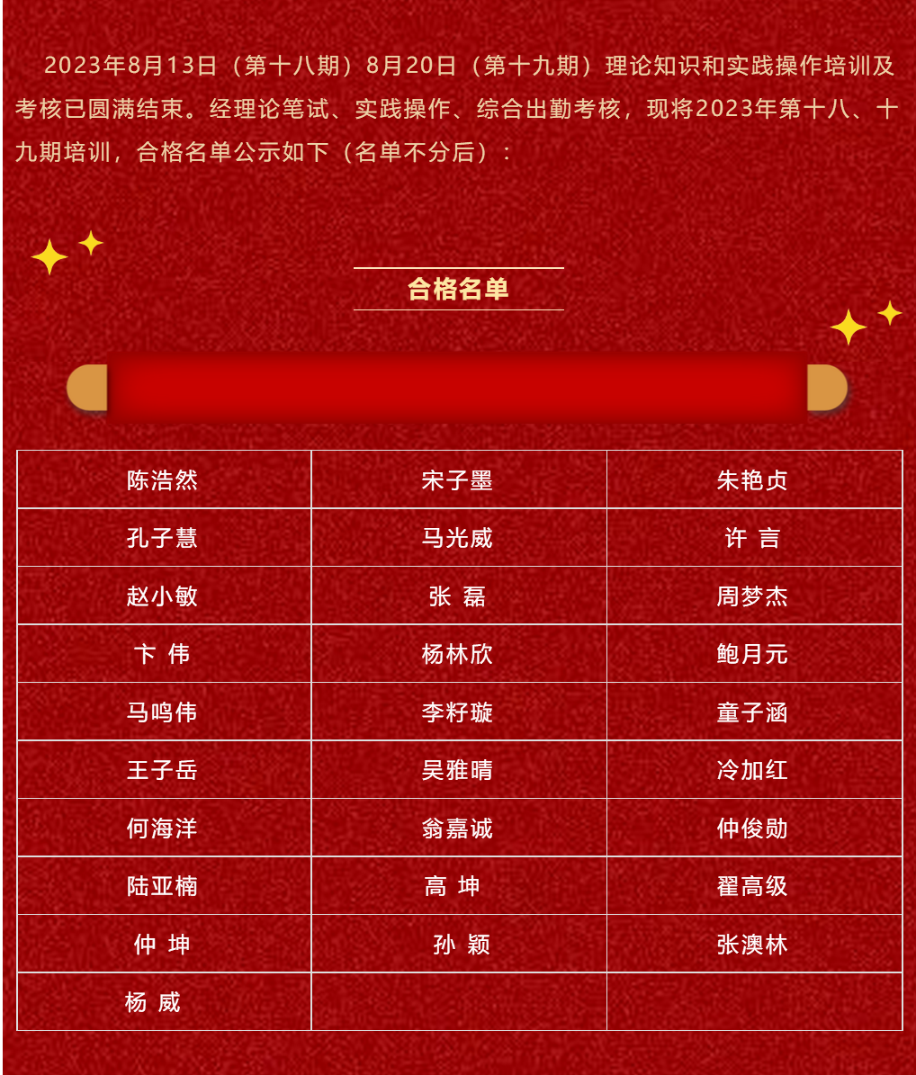 [徐州市]新沂市红十字应急救护培训班第十八、十九期合格学员名单公布