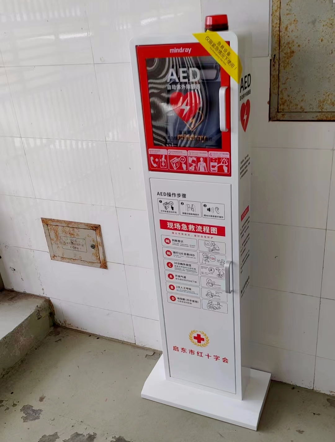 为了助力安全校园建设,启东市红十字会特向我校赠送一台AED设备,安装在学校教学楼底楼西侧楼梯口,以保证发生突发情况时,我们可以利用AED实施紧急救护,守护师生生命安全。