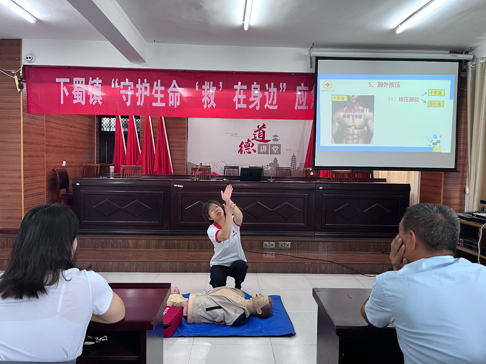 8月23日,句容红会讲师钱隽来到下蜀镇行政服务中心,为该镇近50名机关、企事业单位以及消防中队等单位工作人员开展应急救护普及性培训。