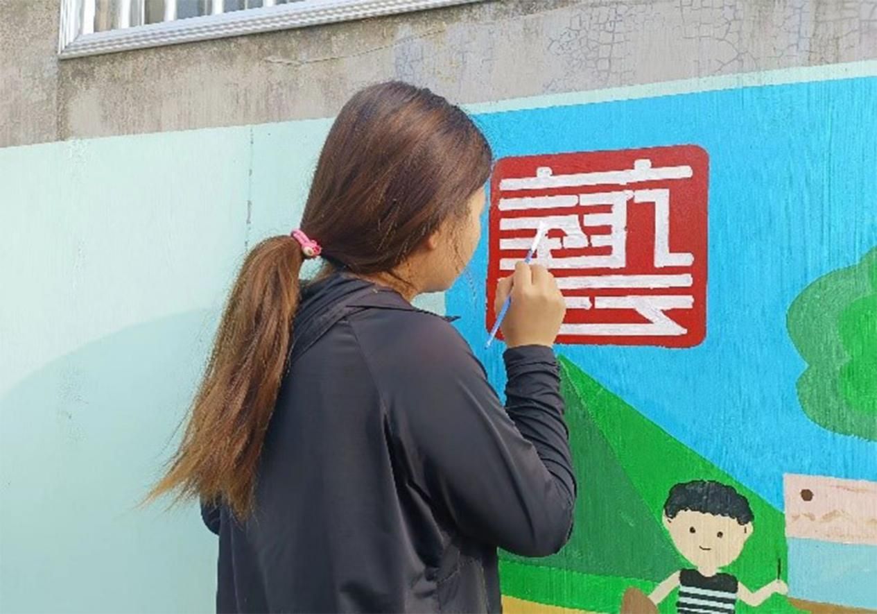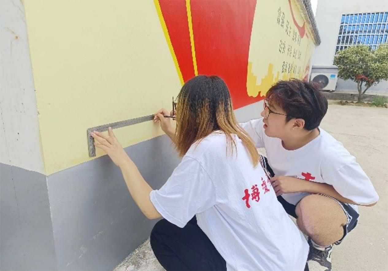 下午,志愿者们将江苏海洋大学艺术设计学院的logo画在墙面上,为本次墙绘画上了圆满的句号。这一举动不仅体现了参与者们对艺术的热爱和对学院的支持,更加丰富了乡村墙绘的内涵。