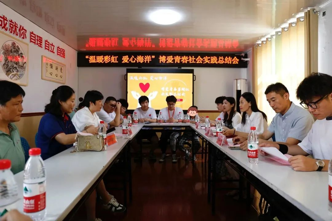 7月9日,“温暖彩虹 爱心海洋”暑期社会实践活动总结会在彩虹桥互助中心举行。江苏海洋大学土木与港海工程学院党委书记王改红等,及实践团队全体大学生志愿者等人,彩虹桥互助中心负责人秦民、仲婷婷,结对帮扶家庭参与。总结会上,志愿者们和彩虹桥互助中心的被帮扶家庭依依不舍,互道惜别。