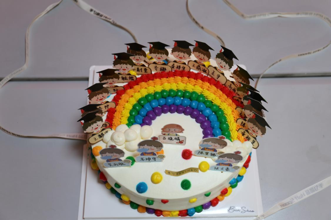 最后,秦民、仲婷婷和各组结对帮扶家庭的家长们给志愿者颁发优秀志愿者证书,全体共同分享绘有参加结对帮扶的所有大学生志愿者及心智障碍孩子姓名的“彩虹桥蛋糕”。