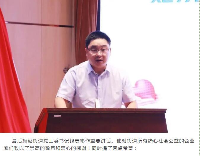 8月25日下午,第三期如东县掘港街道企业家协会“助梦飞翔”博爱基金项目书续签仪式暨掘港街道企业家协会“助梦飞翔”博爱助学活动在掘港街道办事处一楼报告厅举行。