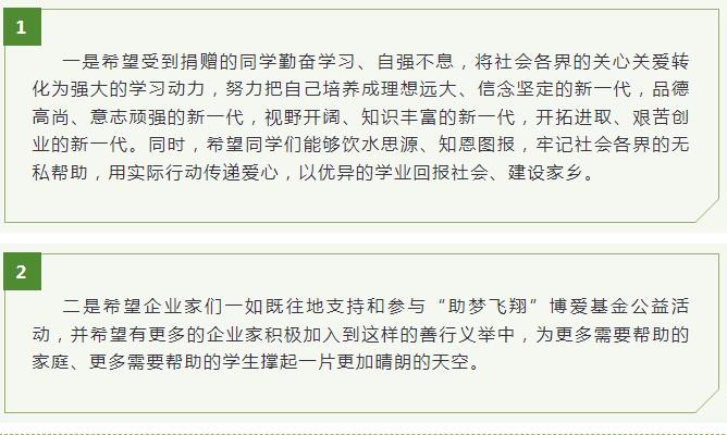 受助学生代表作了很好的发言,他代表全体受助学生感恩家乡爱心企业和领导的关爱和帮助,今后,他们将会以饱满的热情、严谨的态度勤奋学习,回报家乡,同时也会将这份爱的火炬传递下去!