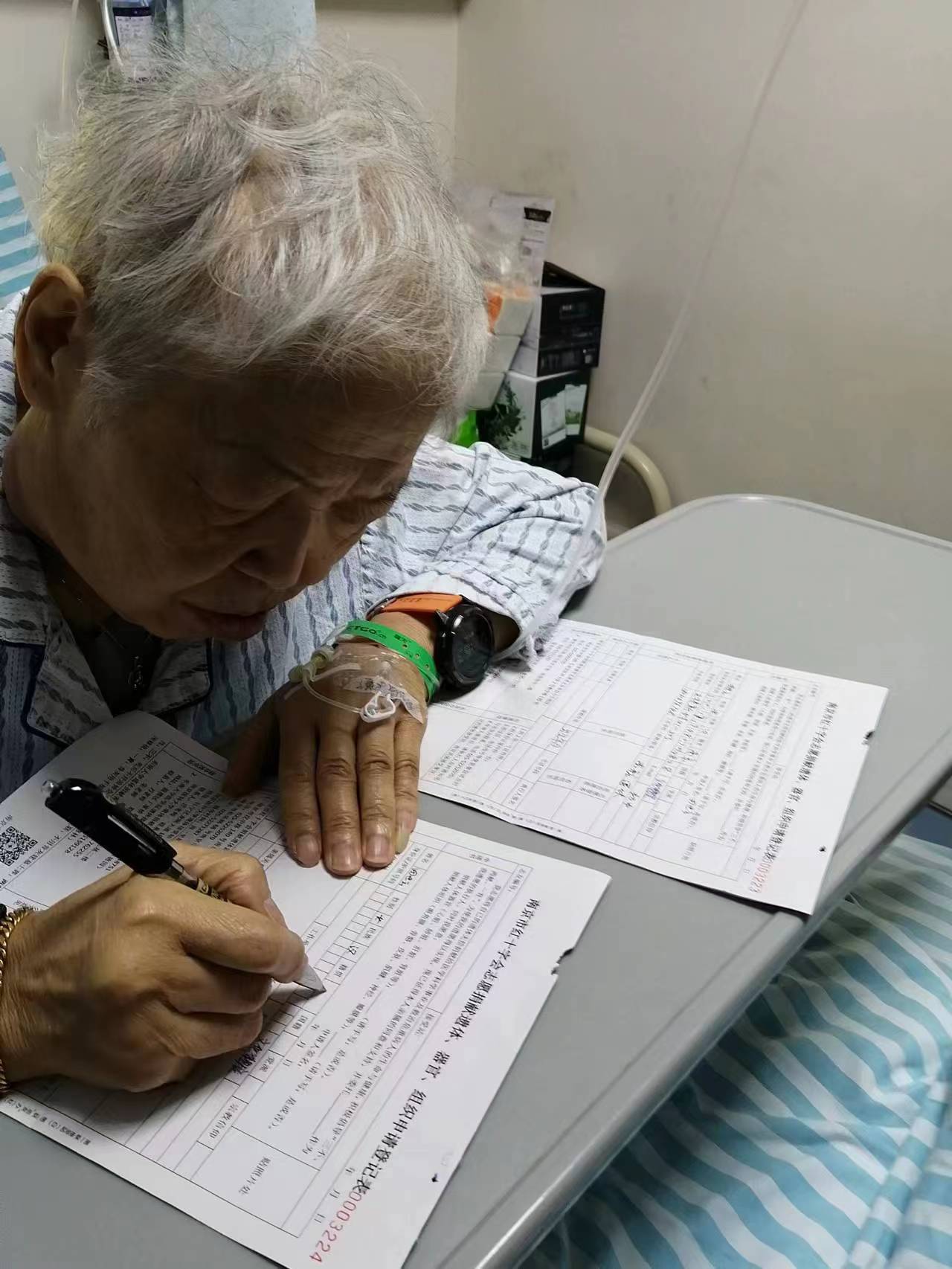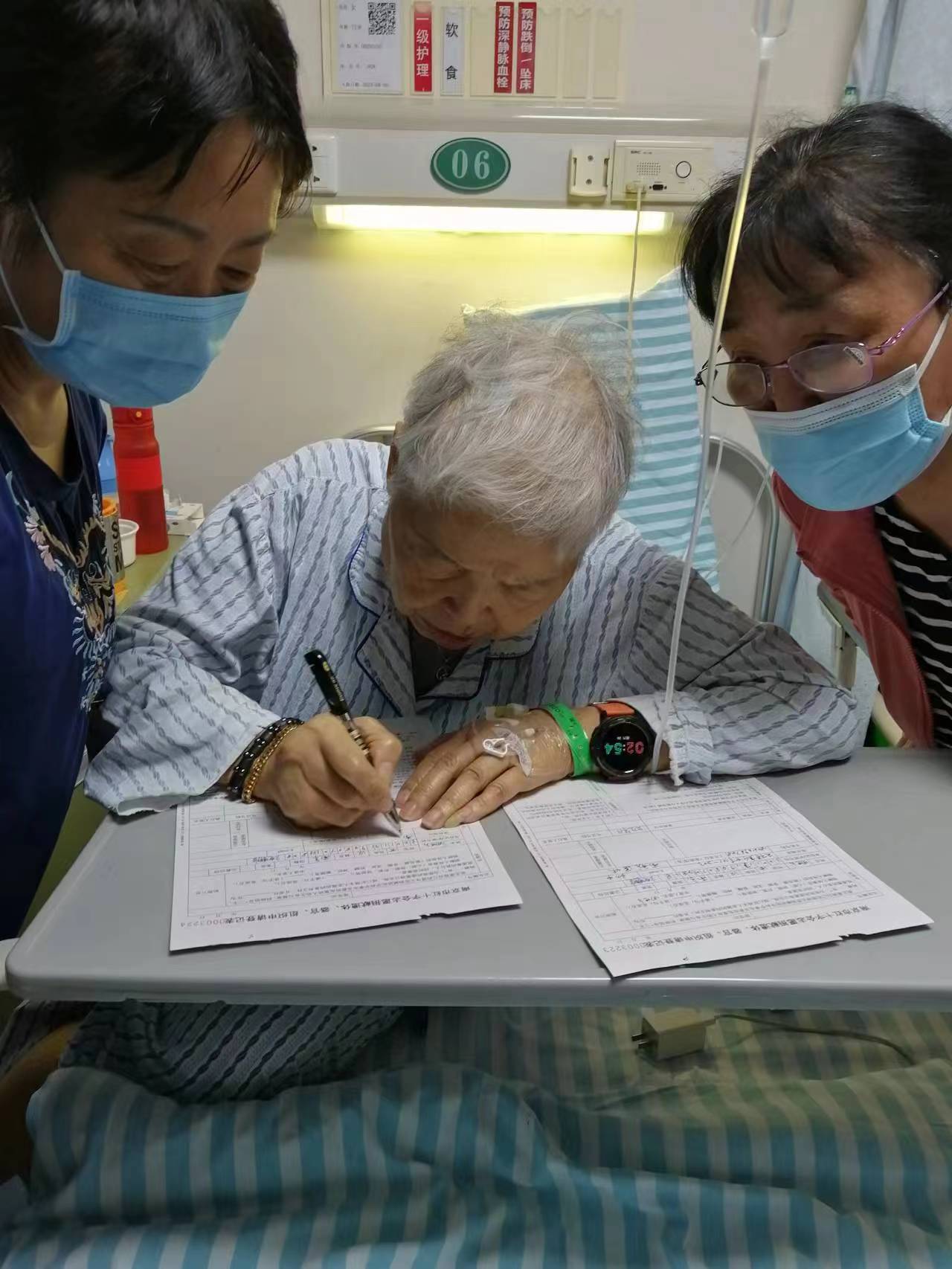 2023年8月25日下午,刚刚‘二次退休’的秦淮区卫岗新村“捐友”小组长王巧云得知辖区内有一位重病老人想遗体捐献,经请示,可送申请表上门,立即就约了新任小组长陆春梅一同前往。第二天上午,当她们冒着烈日炎炎,满脸汗水,转车两三趟来到南医大二附院,田世云老人的病床前,老人感动了,老人的家属也感动了,感激王巧云和陆春梅及时送来了申请表,一来满足了老人的心愿,二来感激二人的真情热心,天气这么热,也没有你们的心肠热。