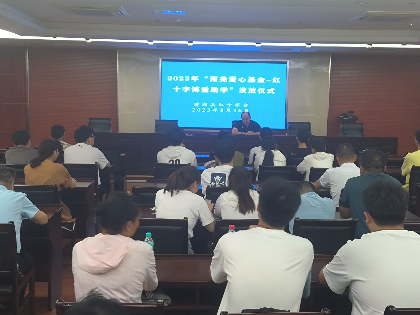 8月16日,建湖县红十字会举办2023年“雨尧爱心基金--红十字博爱助学”发放仪式,县红十字会四级主任科员赵建军主持此次活动。