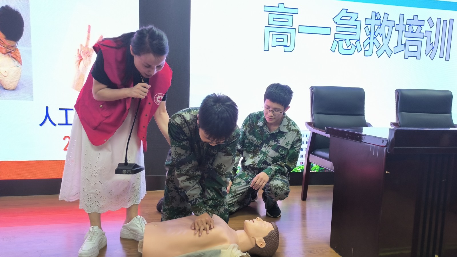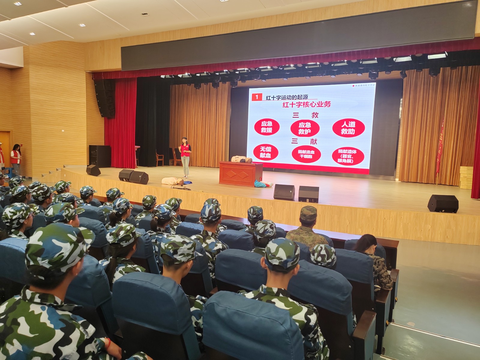 张家港市红十字会已连续12年结合高一新生军训举办应急救护培训讲座。此次培训覆盖全市10所高中,5791名新生参与。