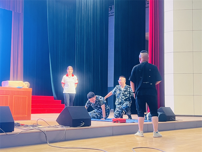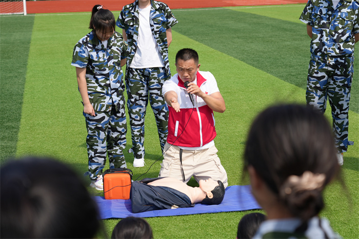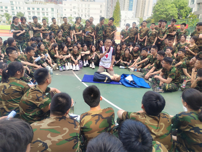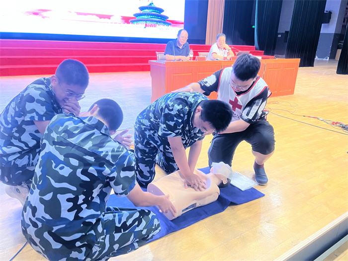 8月25日,市红十字会在市实验高级中学开展“救在身边校园守护行动”, 为800余名高一新生开展救护培训活动。