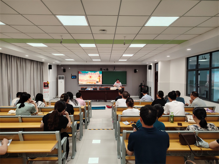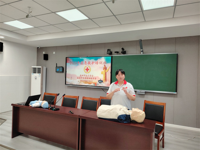 8月27日,市红十字会在市东进路初级中学开展“救在身边校园守护行动”, 为33余名教职员工开展救护培训活动。