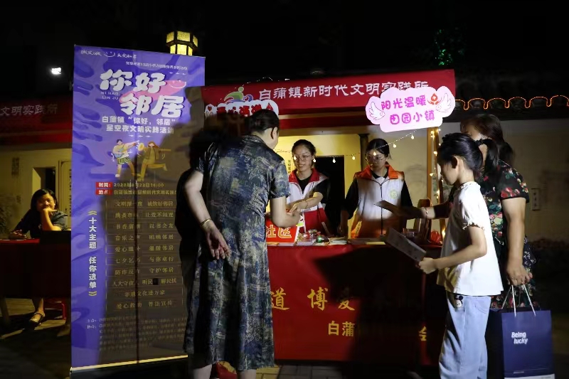8月25日,“文明新风润蒲塘”主题后续活动“邻居,你好!”博爱夜市,如期进行,白蒲镇红十字会等发起单位爱心不打烊,向夜市市民介绍红十字发展史、普及灾害救援、生命健康保护常识,并通过知识竞答形式配送红十字纪念品,主导全场爱心市集,倡导博爱、平安、和谐白蒲建设。