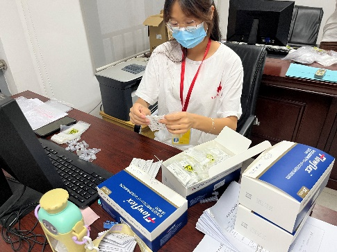 此外,志愿者们还进行了抗原试剂的分装工作。他们认真遵循操作规程,将试剂分装到小瓶中,确保每个瓶子的质量和准确性。这项工作的重要性在于,抗原试剂是疫情防控中必不可少的工具,通过志愿者们的努力,福利院能够及时获得充足的试剂供应,为老人和儿童提供更安全的生活环境。