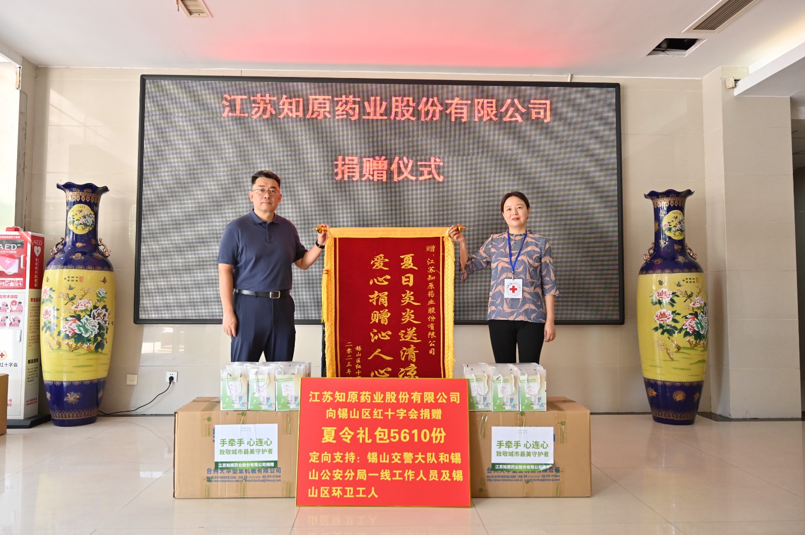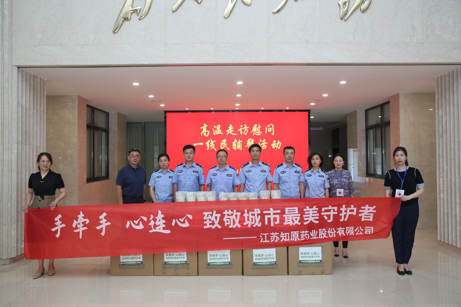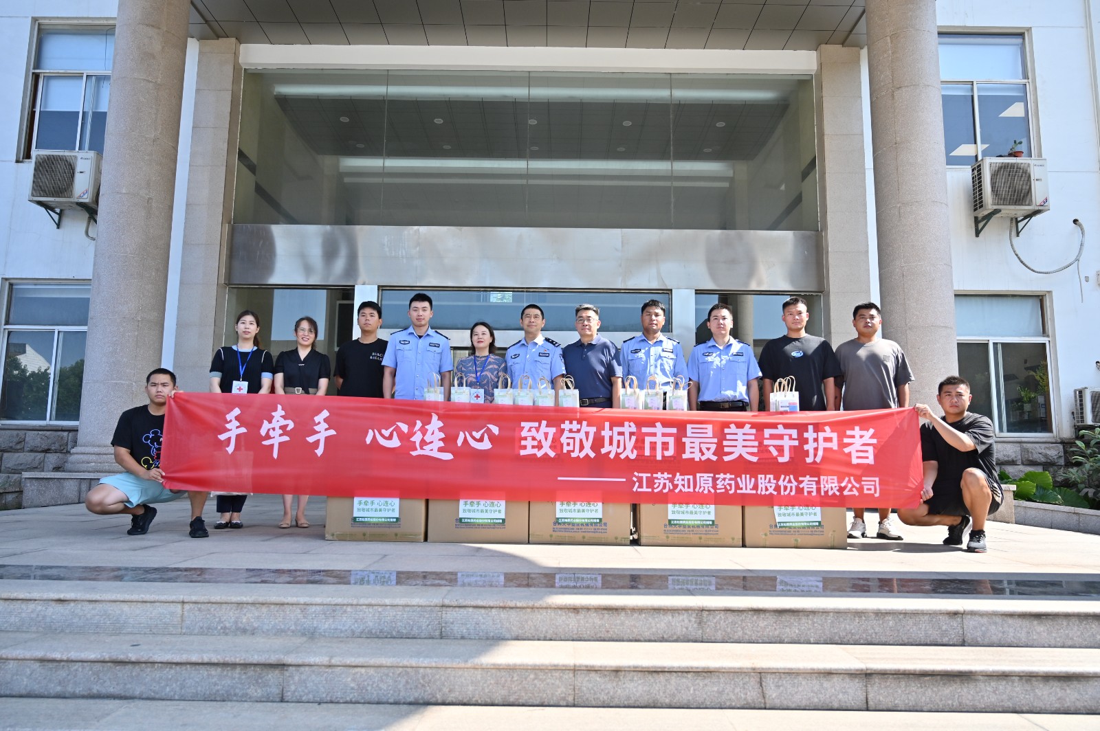 8月21日上午,锡山区红十字会联合江苏知原药业股份有限公司举行“手牵手 心连心 致敬城市最美守护者”爱心捐赠活动,慰问高温天气里仍坚守岗位的锡山交警大队和锡山公安分局的一线工作人员及锡山区环卫工人。