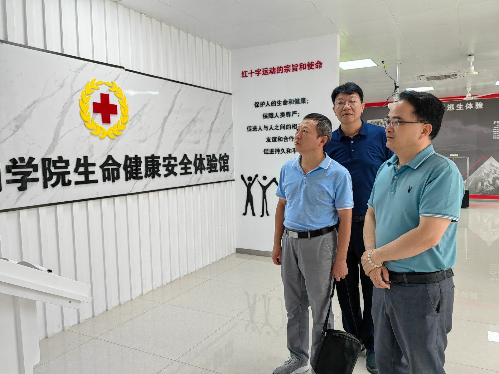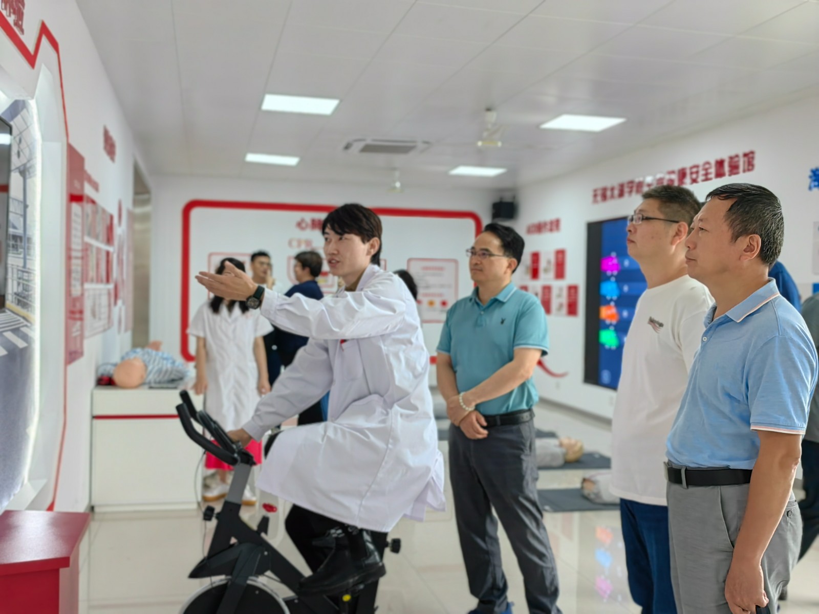 随后,考察组一行实地参观了无锡太湖学院生命健康安全体验馆,并饶有兴趣地对各功能性模块进行了互动体验。太湖学院生命健康安全体验馆是无锡市红十字会在高校精心打造的学校生命教育示范基地,集布局合理、功能齐全、互动有趣和实用性强等特点于一身,给考察组一行留下了深刻的印象。