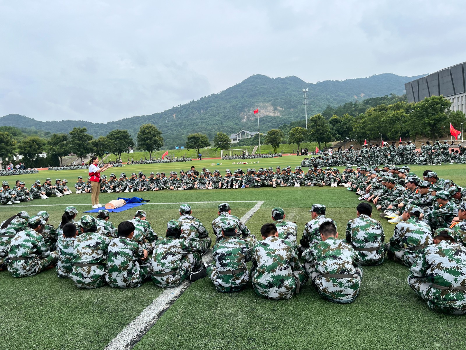 救护师资为学生们重点讲解了预防溺水、心肺复苏、AED的使用、止血、包扎、固定、搬运等常见的救护知识,师资们用模拟人进行徒手心肺复苏术、海姆立克急救法现场演示。在授课结束后,组织学员对所学“心肺复苏法”、“创伤包扎”等内容进行实操演练。全区3000余名初、高中学生在参加军训的同时,也掌握了基本的救护知识。