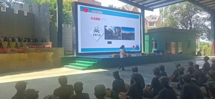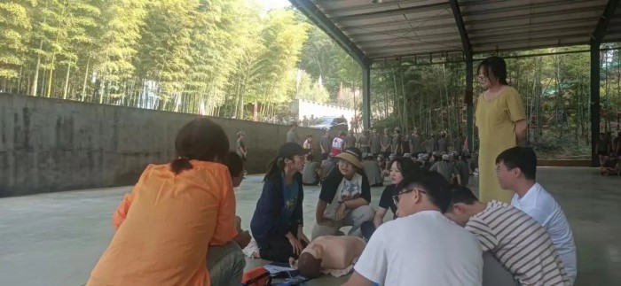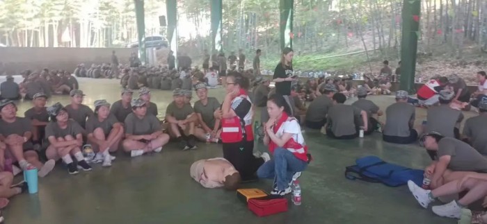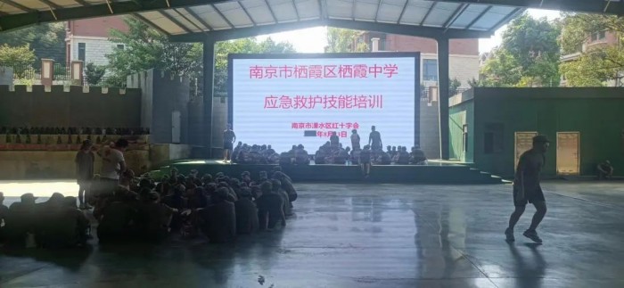 8月23日,受栖霞区红十字会委托,溧水区红十字会组织24名救护老师在溧水大金山基地,为栖霞中学600名学生开展应急救护培训。