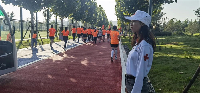 为确保现场活动安全,队长韦军,副队长荣中祥、金燕组织大家对急救保障物资进行检查完善,根据跑道情况对参加人员保障点位进行布控,对活动集合点、跑道和终点进行安全排查,确保活动安全有序进行。