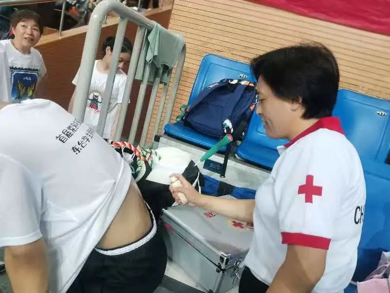 赛事期间,红十字应急救援队派出4名队员全程参与赛事应急保障,比赛现场分别设置应急处置点,配备应急救援队员,为运动员、裁判员、志愿者、观众提供应急救护保障。每场配备AED便携式自动体外除颤仪1台、急救箱等,为身体不适的选手提供及时有效的服务。