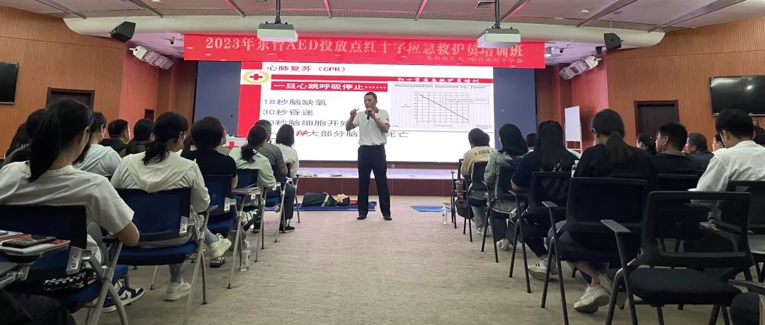 为响应9月1日起正式施行的《盐城市人民代表大会常务委员会关于在公共场所配置自动体外除颤器的决定》, 近日 ,东台市人大常委会和市红十字会在高新区红十字应急救护培训教室,共同举办2023年AED投放点红十字应急救护员培训班。