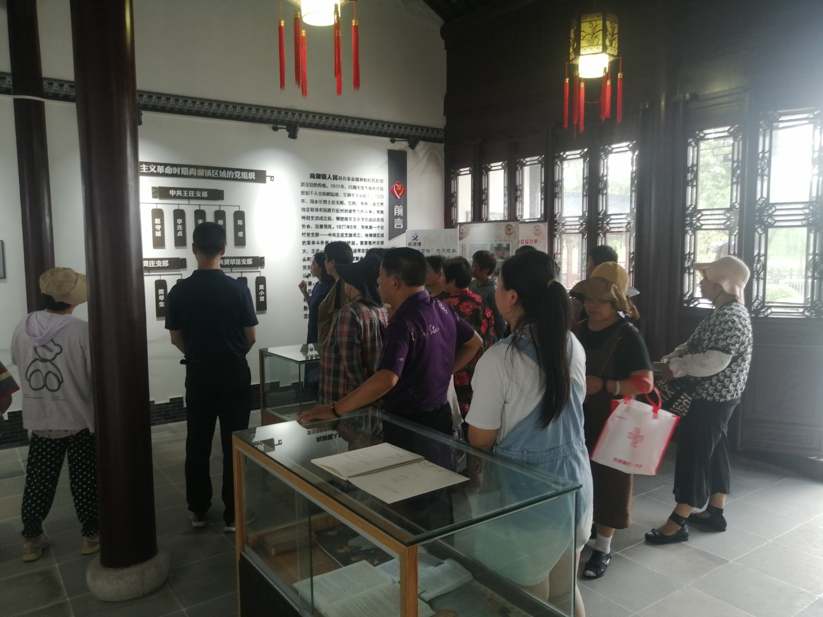 上午8点30分,博爱家园的红十字志愿者和计生特殊家庭人员在尚湖镇新鑫村集合,一路打卡尚湖“红色游”景点,赏枕水小村落水渠里的宁静闲雅,观革命旧址黄草荡的厚重历史。