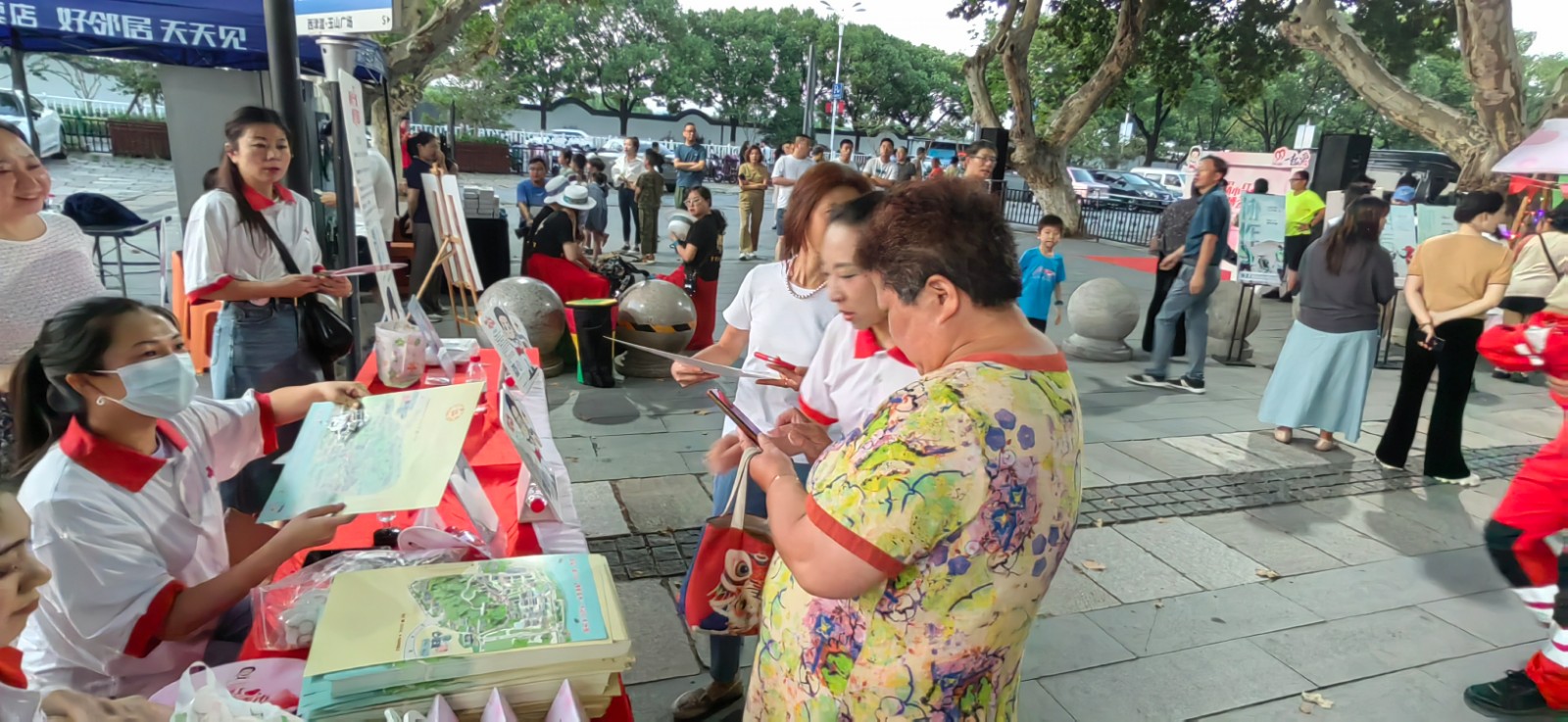 主会场,游客爱心如潮,正在直播的分会场也热闹非凡,待渡亭里,“千古江山,英雄无觅孙仲谋处。舞榭歌台,风流总被雨打风吹去。斜阳草树,寻常巷陌,人道寄奴曾住。想当年,金戈铁马,气吞万里如虎……”镇江实验学校的学生们慷慨激昂的齐声朗诵引发现场市民的交口称赞,“这才是新时代的少年,充满激情,神采飞扬。”学生们热情宣讲着镇江历史和红十字文化。在爱心驿站里,红十字志愿服务故事生动讲述人间的真情与温暖;在救生会红船旁,红十字救援队则述说着先进的水域救援手段,两股救援力量穿越百年相望,大爱之城将续写更多奇迹。