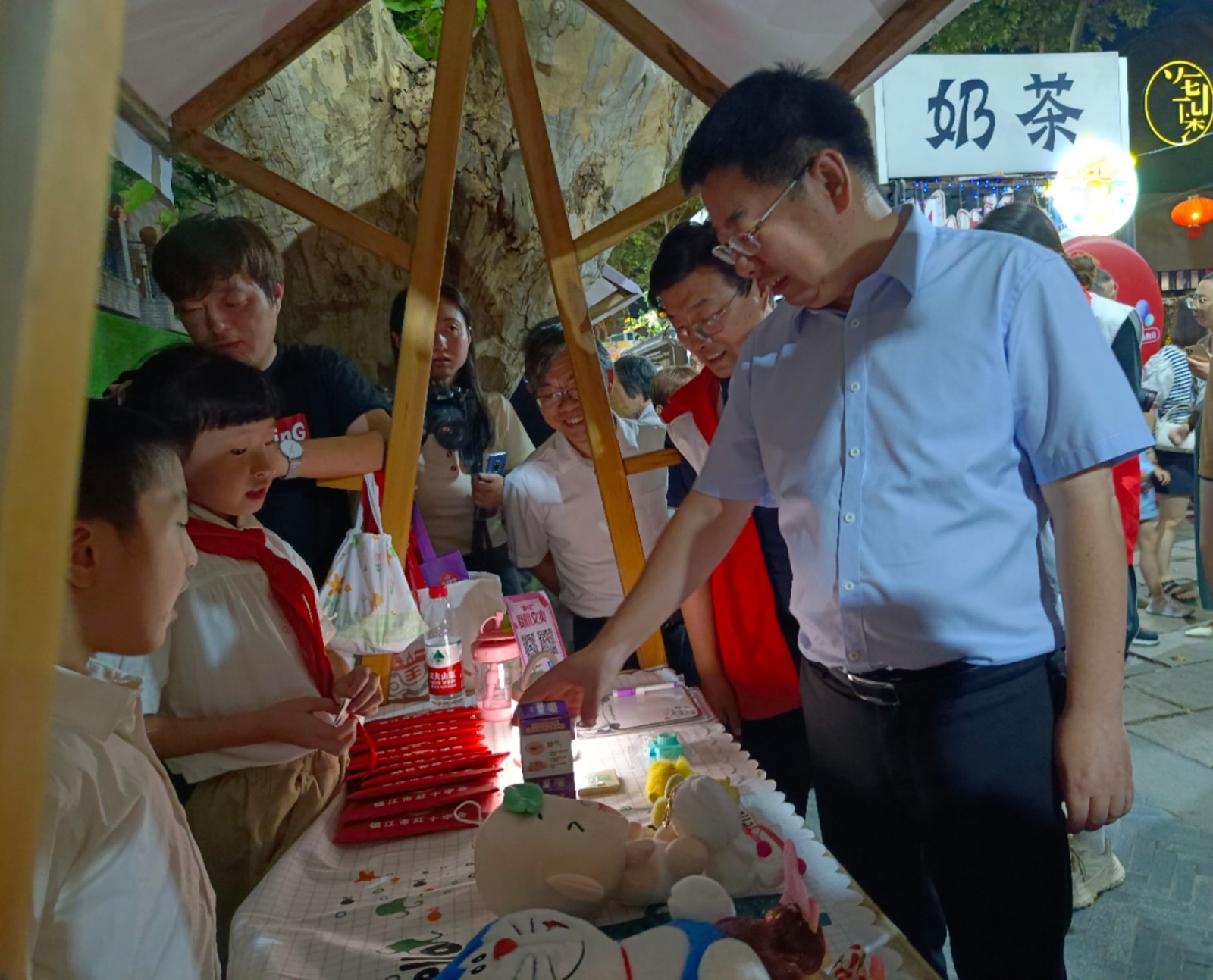 爱心义卖、医生义诊、救护救援展示、生命接力宣传、文艺演出……9月9日的西津古渡夜市游人如织,热闹精彩,更涌动着满满爱意。适逢第二十四个“世界急救日”,亦是“99公益日”活动最后一天,镇江市红十字会携手润州区红十字会、金山街道西津古渡社区等多家单位共同在西津古渡开展首届“镇小红·博爱夜市”世界急救日暨99公益筹资宣传活动。镇江市副市长、市红十字会会长武鸣参加。