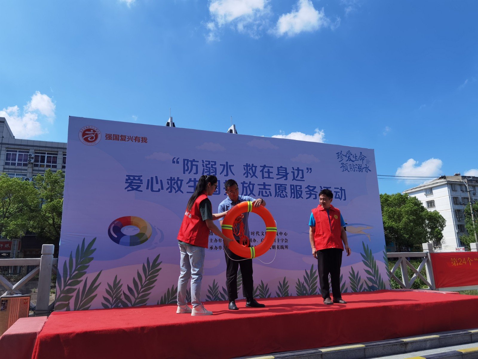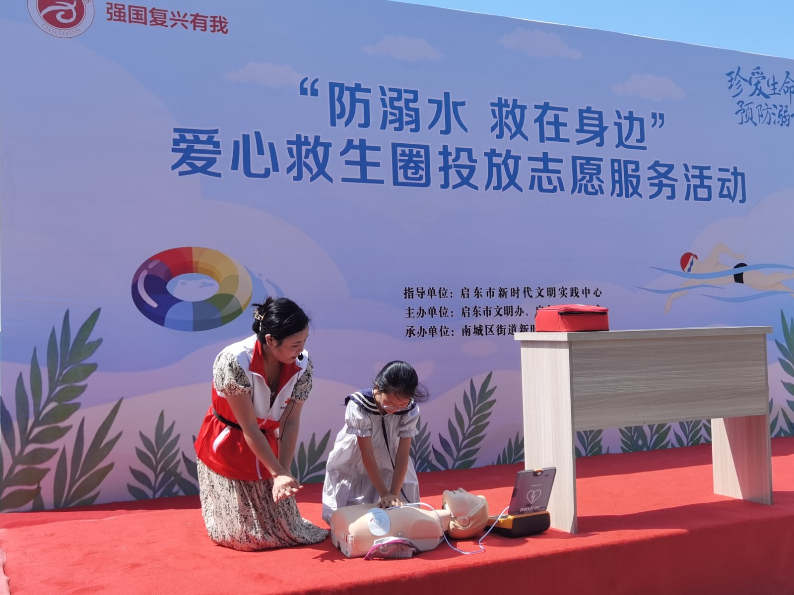 为深入贯彻落实习近平总书记关于“人民至上、生命至上”的重要指示精神,进一步织密织牢南城区街道防溺水安全网,坚决防止溺水事故的发生,切实保障居民的人身安全,结合第24个世界急救日“数字赋能 ‘救’在身边”主题活动,9月9日上午,在启东市新时代文明实践中心指导下,由启东市文明办、启东市红十字会主办,南城区街道新时代文明实践所承办的“防溺水 救在身边”爱心救生圈投放志愿服务活动在建都新村社区新时代文明实践站如期举行。