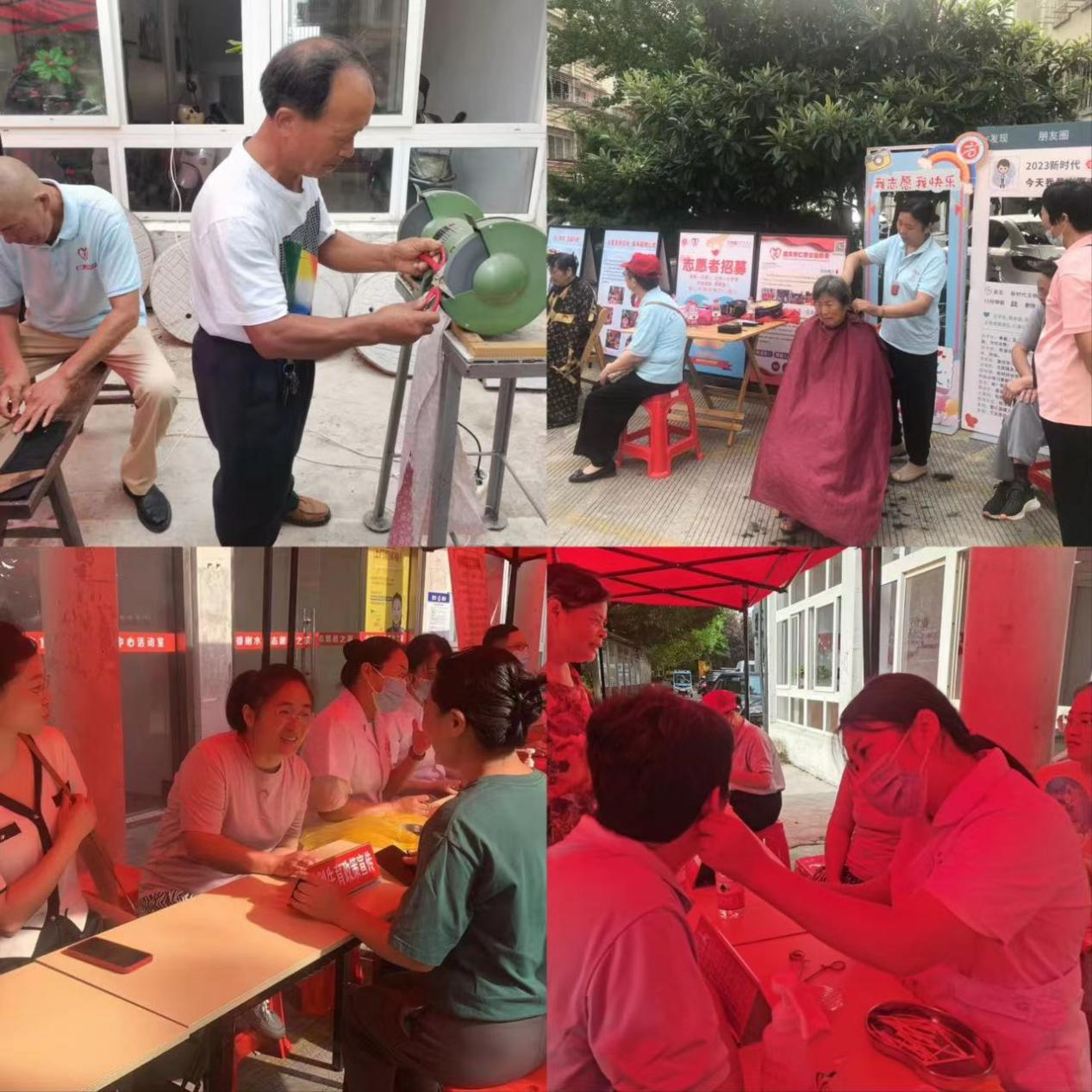 活动现场,人头攒动,热闹非凡。志愿者们为居民朋友们提供了中西医耳鼻咽喉科义诊、心内科专家义诊、中医护理操作体验、眼科检查、免费理发、磨剪刀、量血压、反诈知识宣传等形式多样的志愿服务项目。