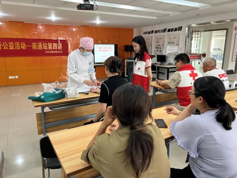 活动通过9·9公益日募捐、生命教育等形式广泛传播健康、科学、文明的生命理念和人道价值。虹桥、虹东、新中、光明等社区通过开设急救知识讲座,现场演练急救实践等方式,为大家普及触电、中风、中暑、溺水等情况的预防和急救知识,重点讲解心肺复苏的具体操作步骤和要点,并现场演示了胸外按压、人工呼吸等紧急救护方法。居民们在医生的指导下,体验了心肺复苏、胸外按压、人工呼吸等内容,掌握了更多的应急救护知识。医生还免费为居民测量血压、血糖。