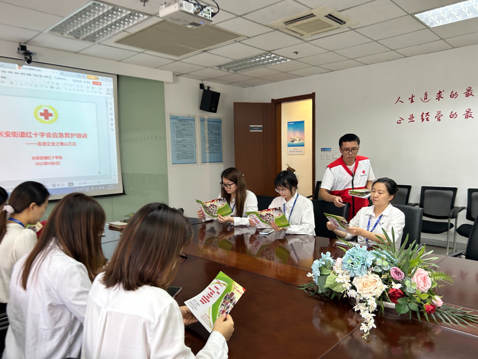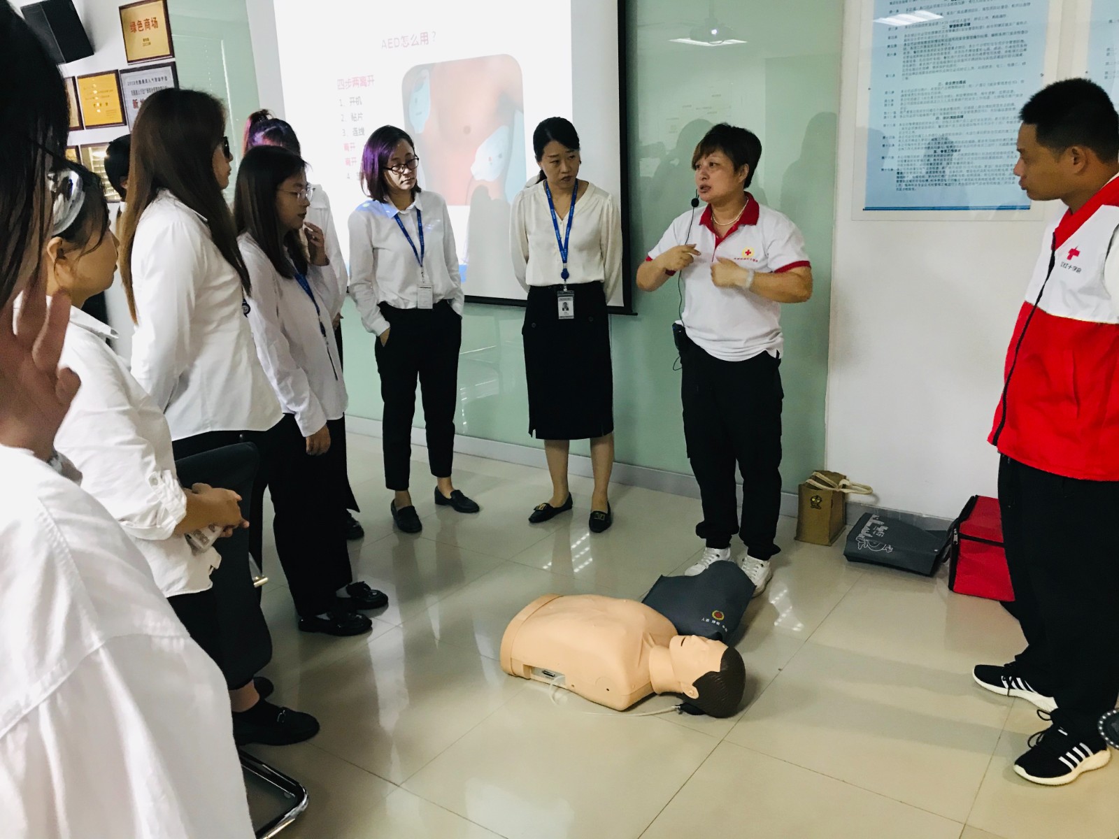 下午2点,活动正式开始,首先来自长安街道红十字会的胡老师用PPT给大家讲解了红十字相关知识和心肺复苏术的理论课程,胡老师讲到心肺复苏是全球最为推崇、普及最为广泛的急救技术,是针对心跳和呼吸骤停所采取的挽救生命的技术,这番话让大家对心肺复苏术的重要性有了深刻认识,接着胡老师给大家讲了心肺复苏救护的具体程序,最后胡老师邀请大家轮流在假人模型上进行心肺复苏的操作,学员们一一上台练习,胡老师及时纠正大家不准确不规范的地方,很快大家都掌握了心肺复苏的要领。