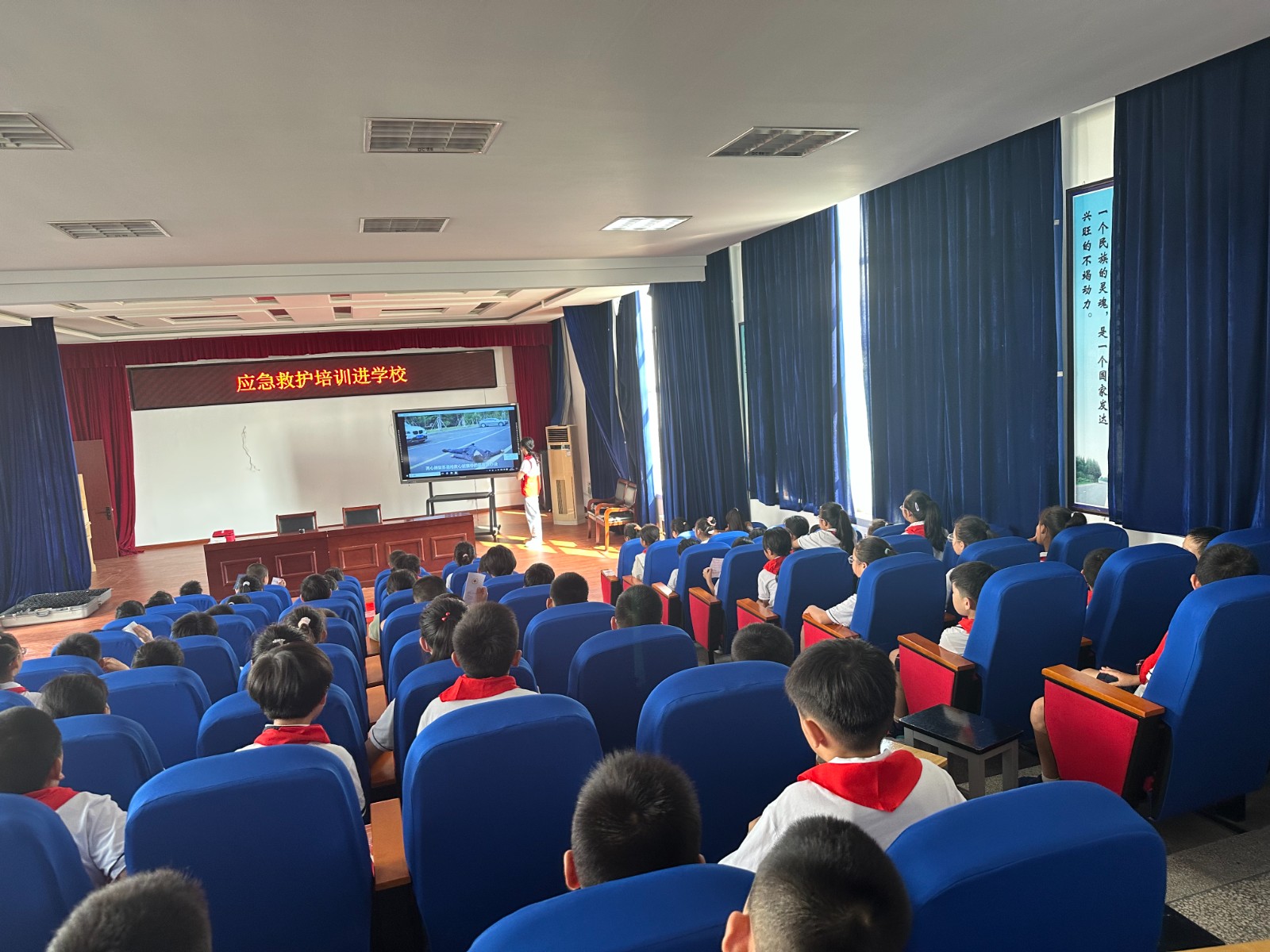 应急救护救护进校园。街道红十字会的培训师们为学生开展了急救知识技能培训,“心肺复苏分环境评估、胸外按压、打开气道、人工呼吸四个步骤......”现场演示环节,向同学们讲解并反复演示了心肺复苏和AED的使用技能、海姆立克急救法,并强调救助过程中需要注意的相关问题,以便更好地实施救护。学生们听得认真,并踊跃上前进行操作。红十字志愿者还设置了有奖问答环节,现场气氛热烈,同学们纷纷积极举手发言,并回答问题。