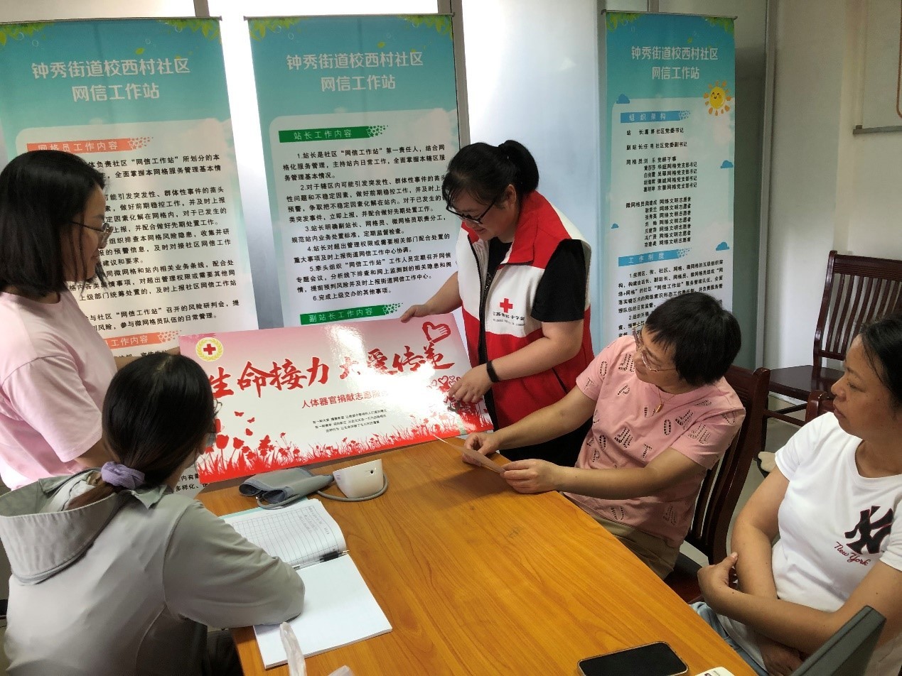为进一步推进人体器官捐献工作,普及器官捐献知识,传播器官捐献理念,营造社会支持参与人体器官捐献的良好氛围。钟秀街道开展以“生命接力·大爱传递”为主题的人体器官捐献志愿登记宣传季活动。