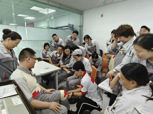 为了增强企业员工安全意识,提升自救互救能力,2023年9月12日,六合区红十字会走进日立安斯泰莫动力系统有限公司,为公司30余名员工开展初级救护员培训。